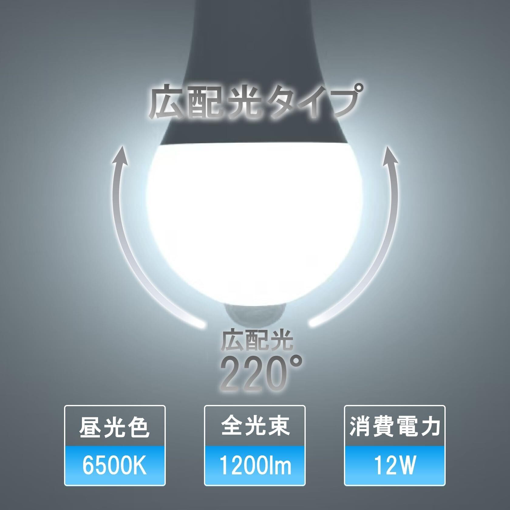 【商品仕様】● 寸法:全長140mm、最大径70mm● 質量:50g● 定格電圧:AC100V(50/60Hz)● 定格消費電力:12.0W● 待機消費電力:0.2W● 全光束:1200 lm● 色温度:/昼光色(6500K)● 平均演色評価:Ra82● 定格寿命:25000時間● 口金:E26● 検知角度:約120°● 検知範囲:直径約4m