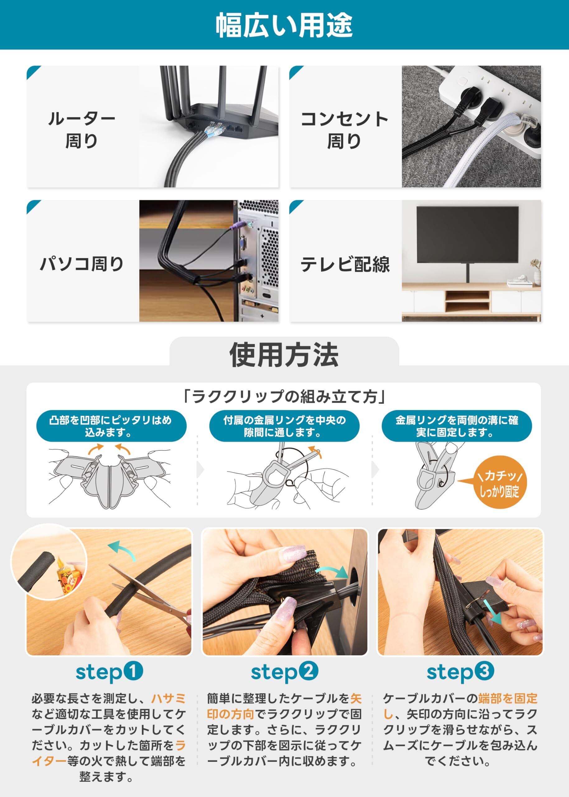 5【多用途に対応した優れた機能性!】テレビの配線、PC周り、さらには自動車修理時など、幅広いシーンでの利用が可能です。配線を整理することで、作業やリラックススペースをさらに快適に演出します。