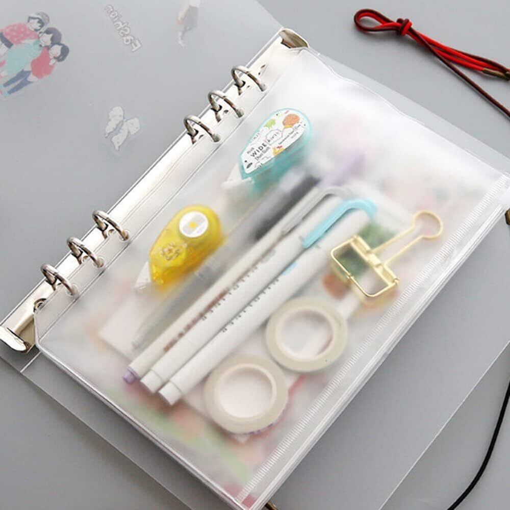 【2022最新】A5サイズ ジッパー付きバインダーポケット, 6穴, PVC製, 半透明, 10枚セット (10枚ポケット)