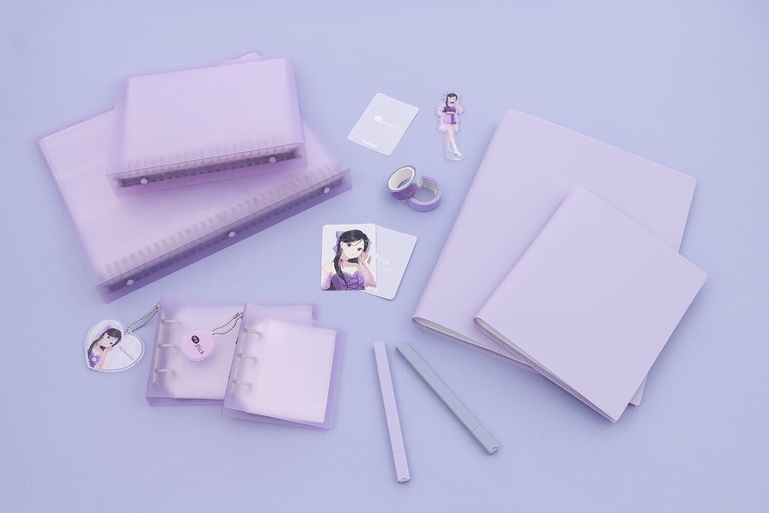 ~"好き"をあつめよう~「my Pick」カラーポケットファイルシリーズ。<トレカバインダー・ミニ>●お気に入りのトレカを持ち歩くのに便利なポケットサイズのバインダー式のトレカファイルです。●キーホルダーが付けられるストラップホール付き。●ポケット形状/上入れ、3穴バインダー。