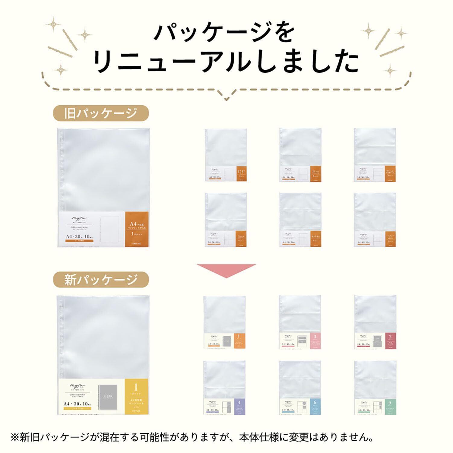 - 特徴:A4サイズ、厚み0.1mm、2ポケットタイプ、10枚入り
