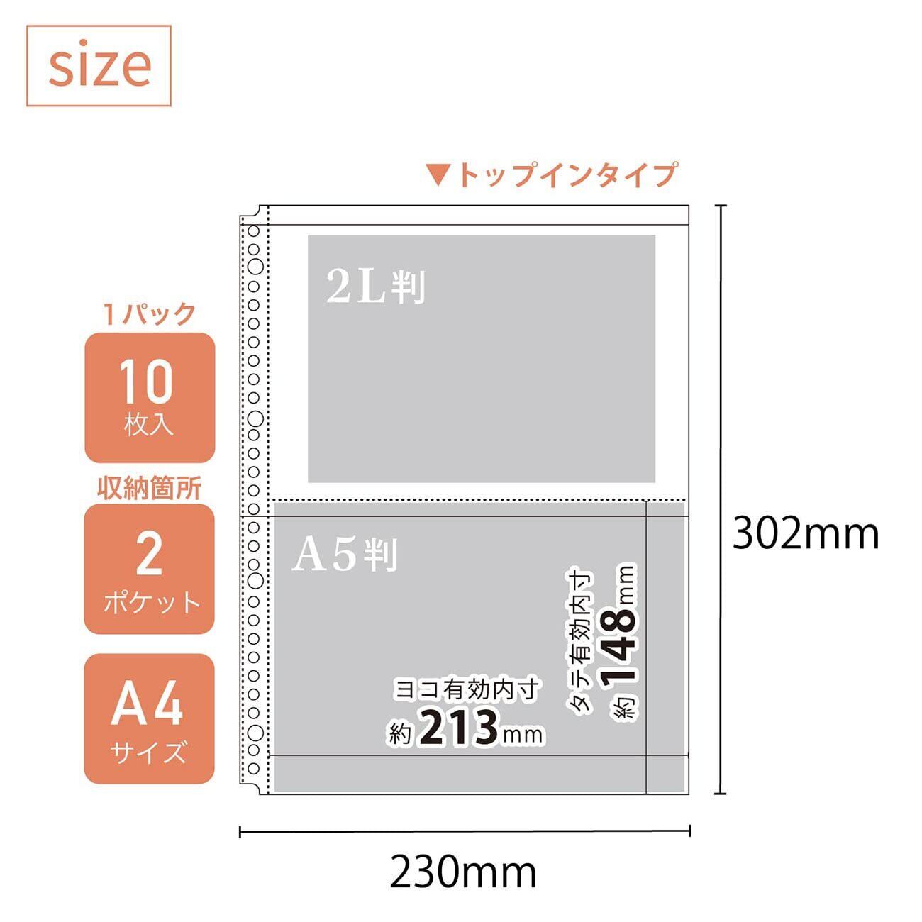 トップインタイプ。片面ポケット。2L判やA5 判写真が入る。