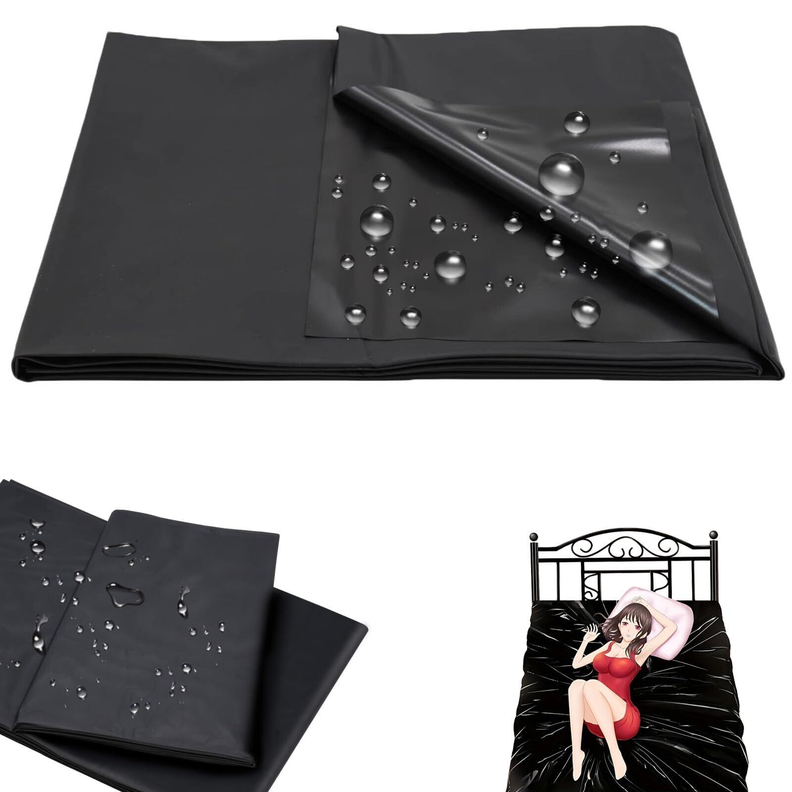 【新着商品】ローションマット セックス 防水 ベッド用 PVC製 薄型 大きめ オイルマッサージ SMプレイマット 使い捨て 防水シーツ 防水マット エッチ用シーツ お風呂 おねしょ 床を汚さない 220M×130M(黒)