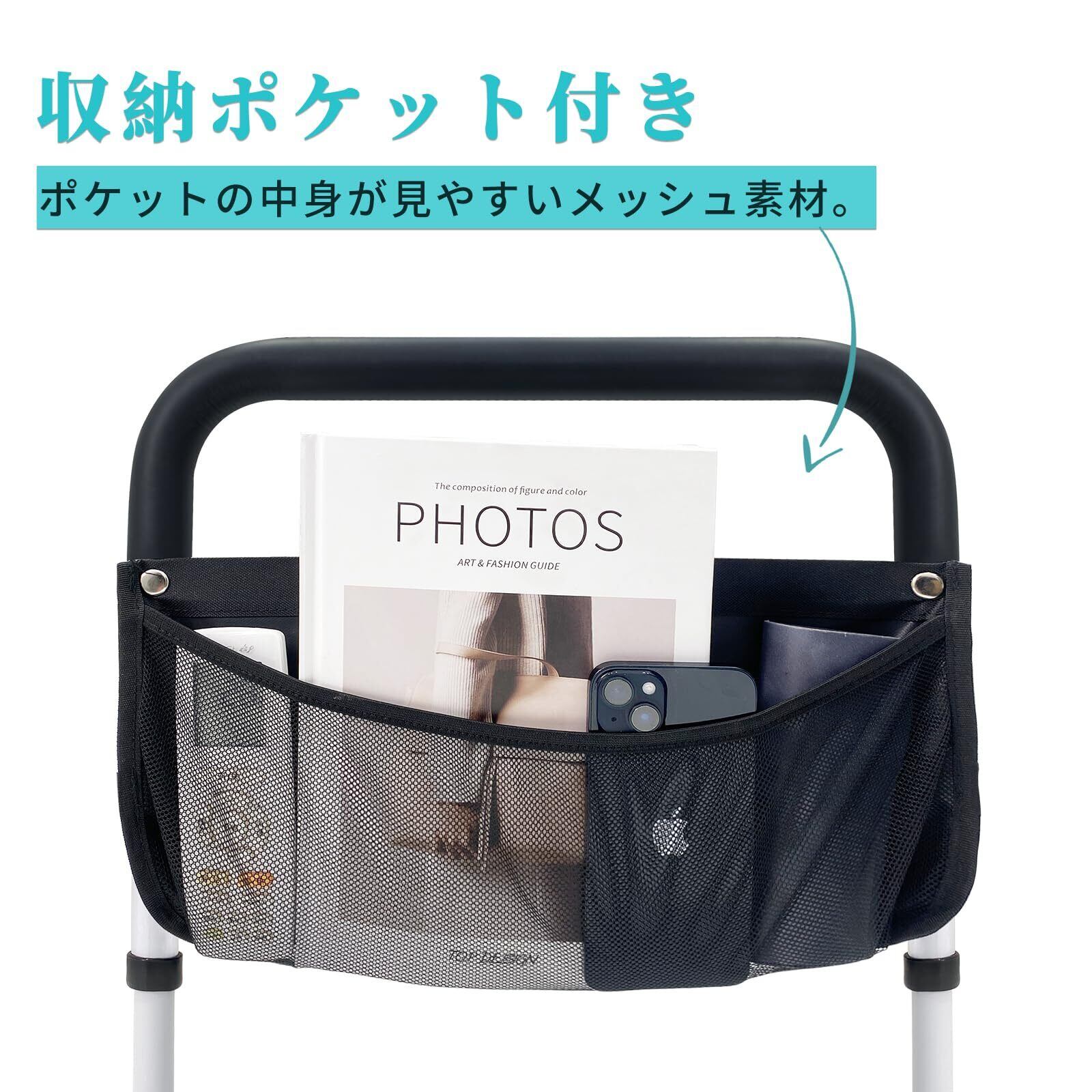ベッドガード大人介護用サイドレール ベッド柵用 起き上がり手すり 手すりサイドレール ベッド落下防止アシストレール 収納ポケット付き ベッド手すりアシストバー 折りたたみタイプベッドガード (白い)