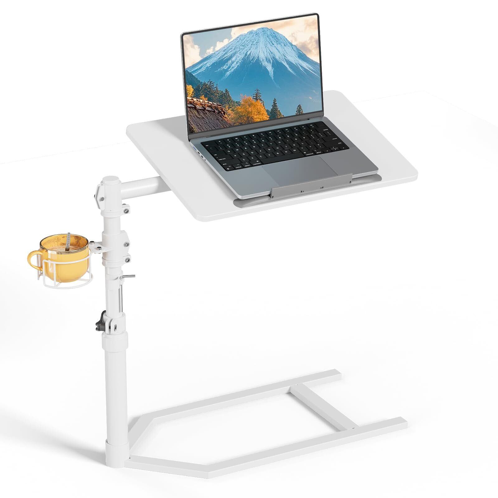 【2022最新】ベッドテーブル 昇降 角度調節可能 天板360°回転 幅50×奥行34cm 高さ47~70cm 耐荷重8kg コンパクト サイドテーブル カップホルダー付き ケーブルクリップ付き 転落防止機構 介護テーブル 縁フレームなしのロフトベッド&ソファ用 ホワイト 白
