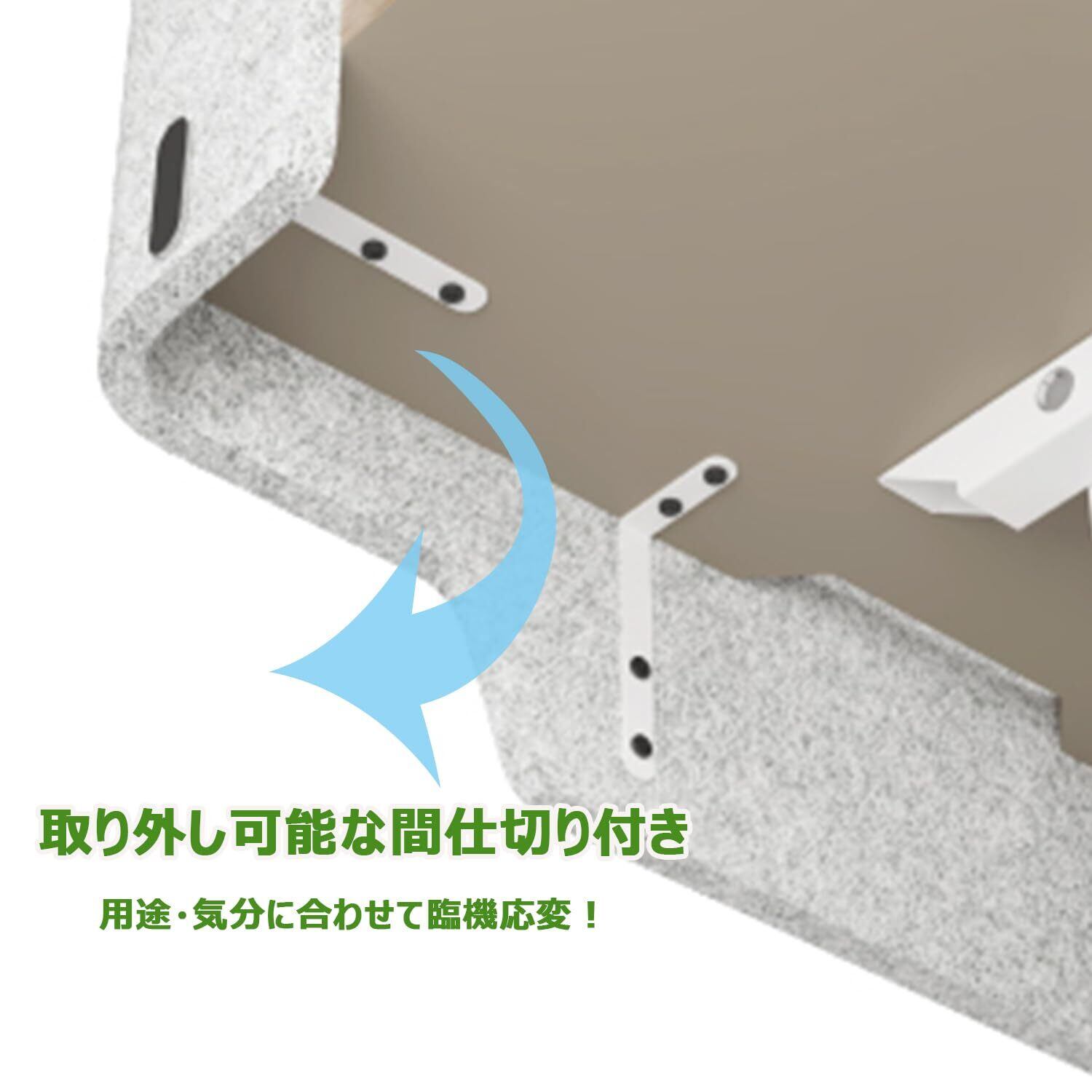【取り外し可能な間仕切り付き】間仕切り付きは取り外し可能です。勉強やオフィスワークがしやすく、食事用の台としても活躍します。