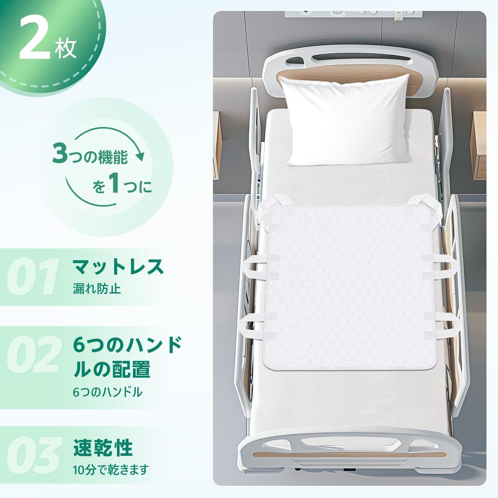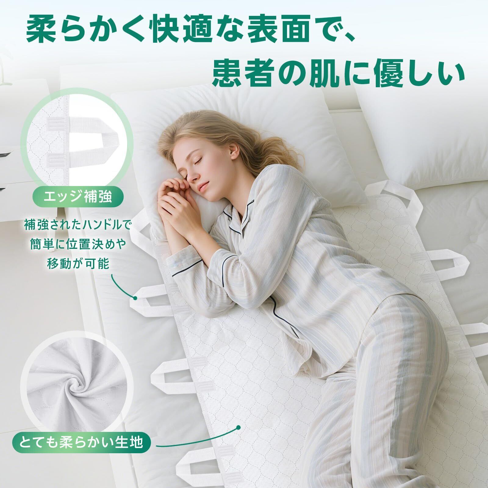 5【丈夫なハンドル付きで取り扱い簡単!】シーツにはしっかりとしたハンドルが付いており、簡単に持ち運びができます。入れ替えや移動も楽々なので、介護現場や家庭での使用に最適で、実用性に優れた設計となっています。