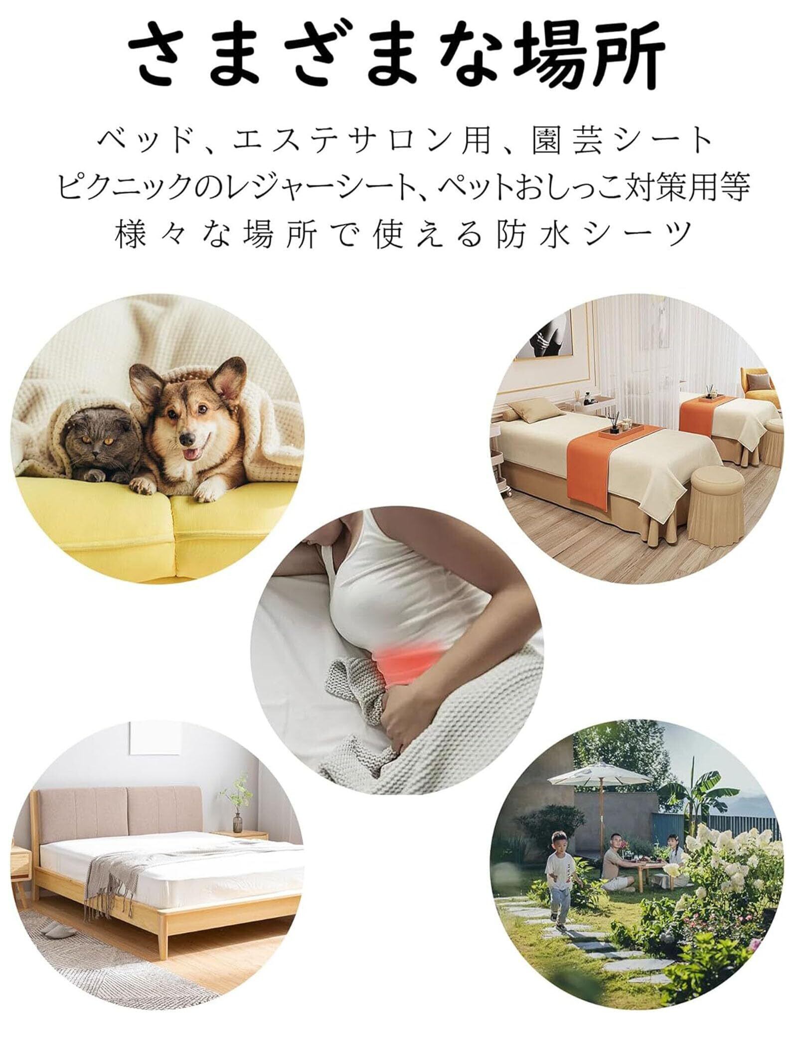 4【幅広い活用シーンで重宝します!】介護の場面やお子様のおねしょ対策に加え、エステやマッサージ、さらにはアウトドアイベント時の防塵カバーやペットのおしっこ対策など、多様なシーンに柔軟に対応します。