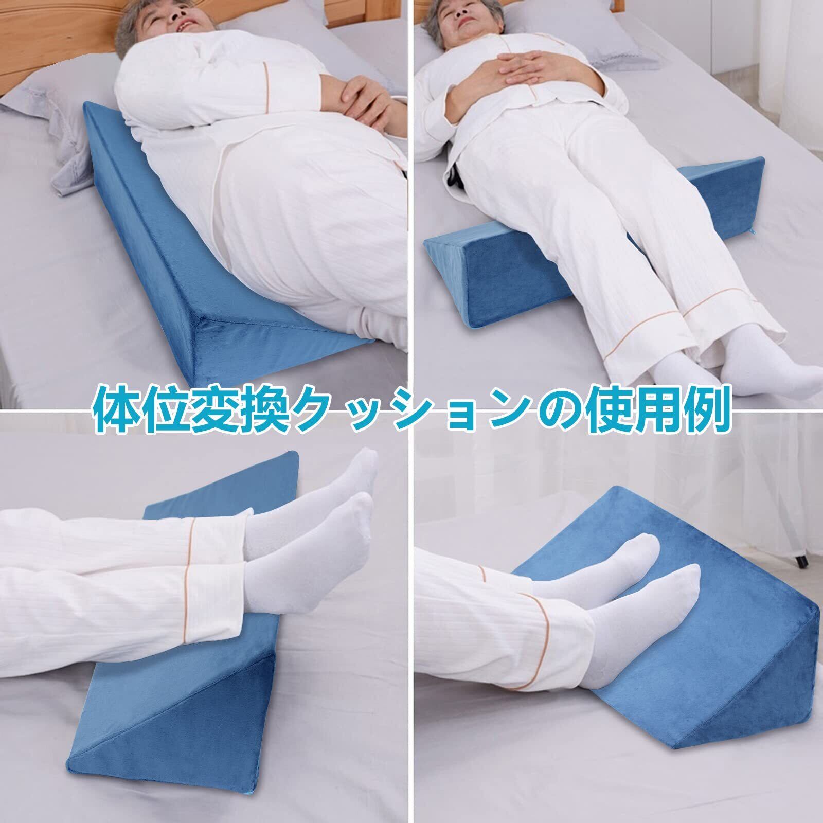 1【快適な介護を実現する多機能クッション!】この「介護用クッション」は、体位変換をサポートするために設計された三角形のマットです。高反発素材を使用しており、介護を必要とされる方の側臥位を快適に保つことができる優れた商品です。