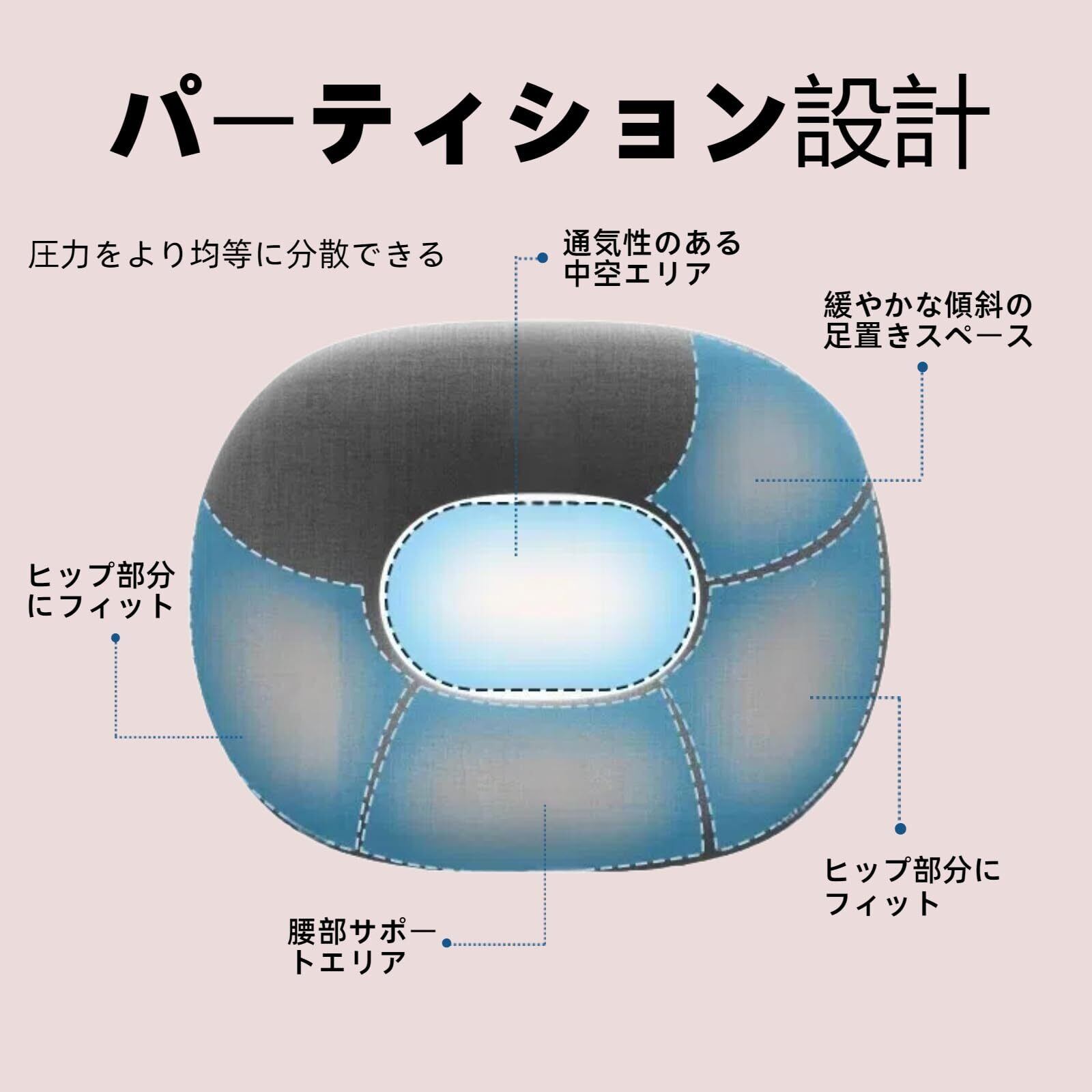 2【体圧をしっかり分散する理想的なデザイン!】中空構造のおかげで、通気性に優れ、体圧が均等に分散されるため、長時間の使用でも快適に過ごすことができます。尾骨骨折や手術後、痔などの不快感を軽減し、安らかな安眠をサポートします。