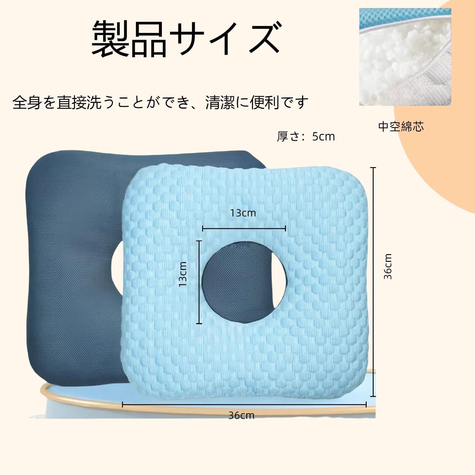 【快適性】このクッションは綿芯を使用し、柔らかく弾力性があります。体の様々な部位にフィットし、痛みを和らげ、体圧を分散します。両面通気性に優れ、快適な使い心地です。