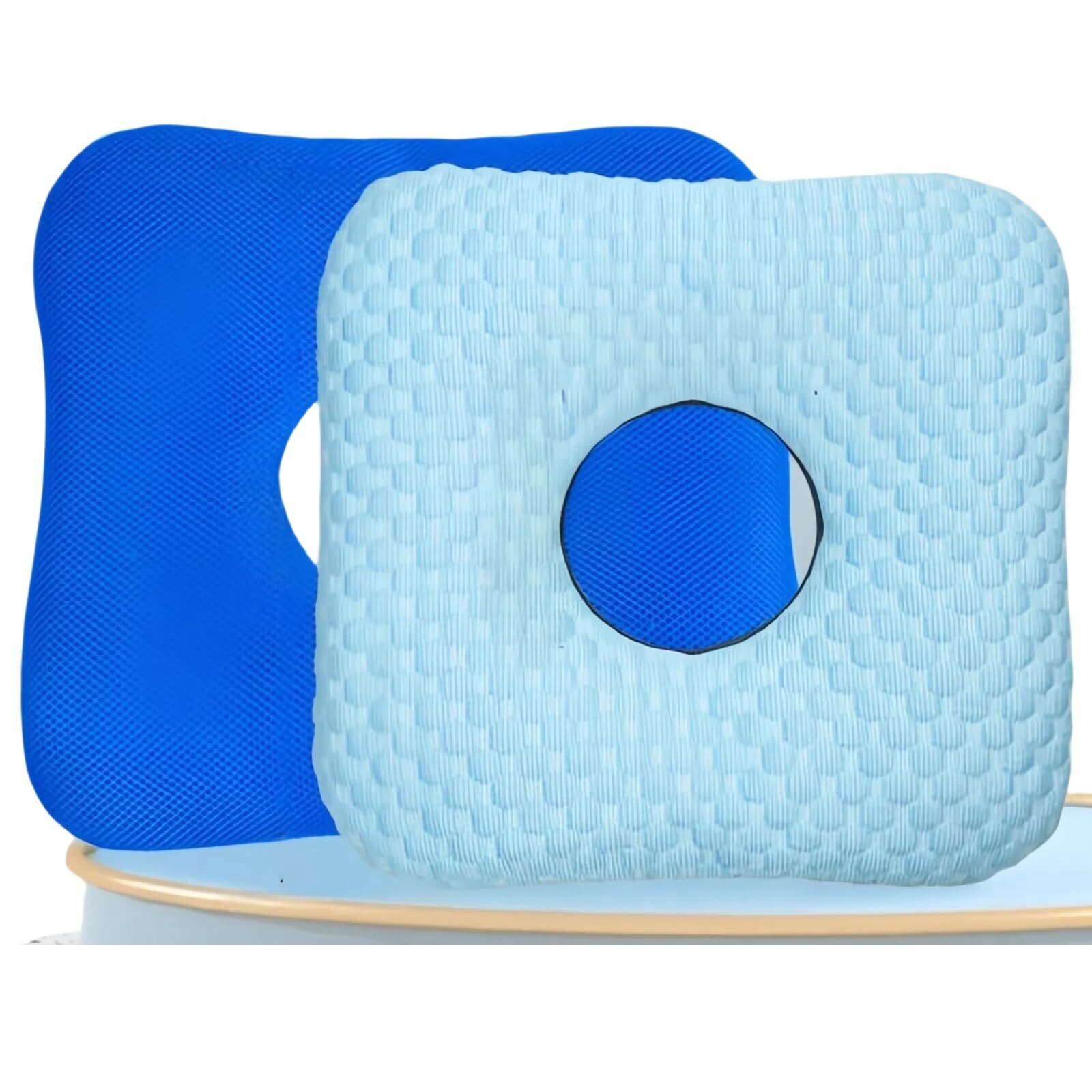 【数量限定】介護用枕 床ずれ防止マット車椅子パッド 体圧分散マット 尾骨骨折圧迫緩和クッション 片面アイスシルク生地 中空で通気性がある 衝撃吸収 四季通用 オフィス 産後 痔 手術後 高齢者 洗濯可能 厚さ:約5CM(ブルー)