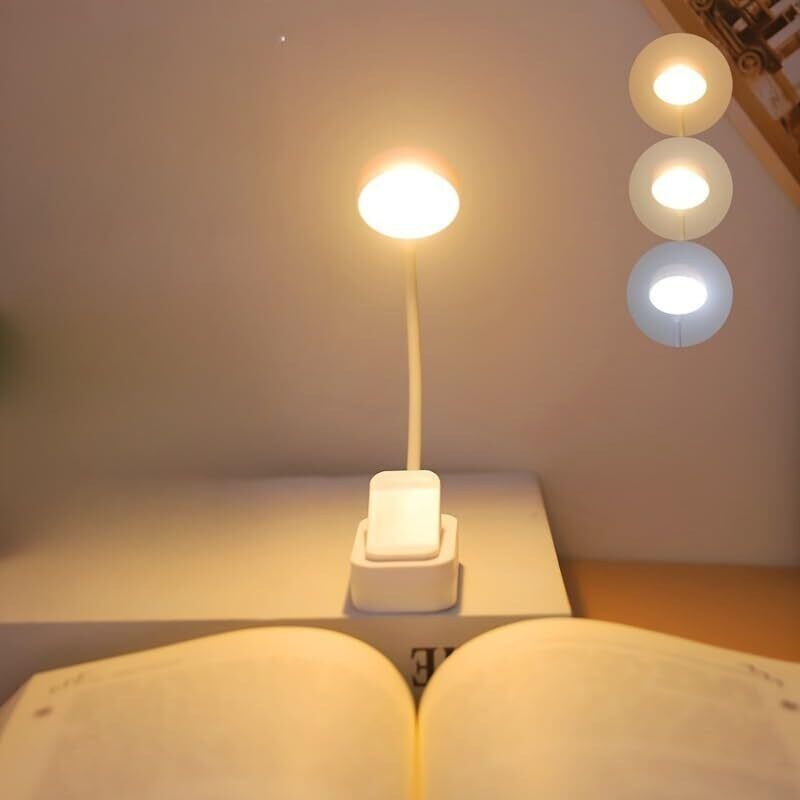 クリップ式読書灯 目に優しい3色温度回転グースネックアーム 読書/クラフト/描画作業用