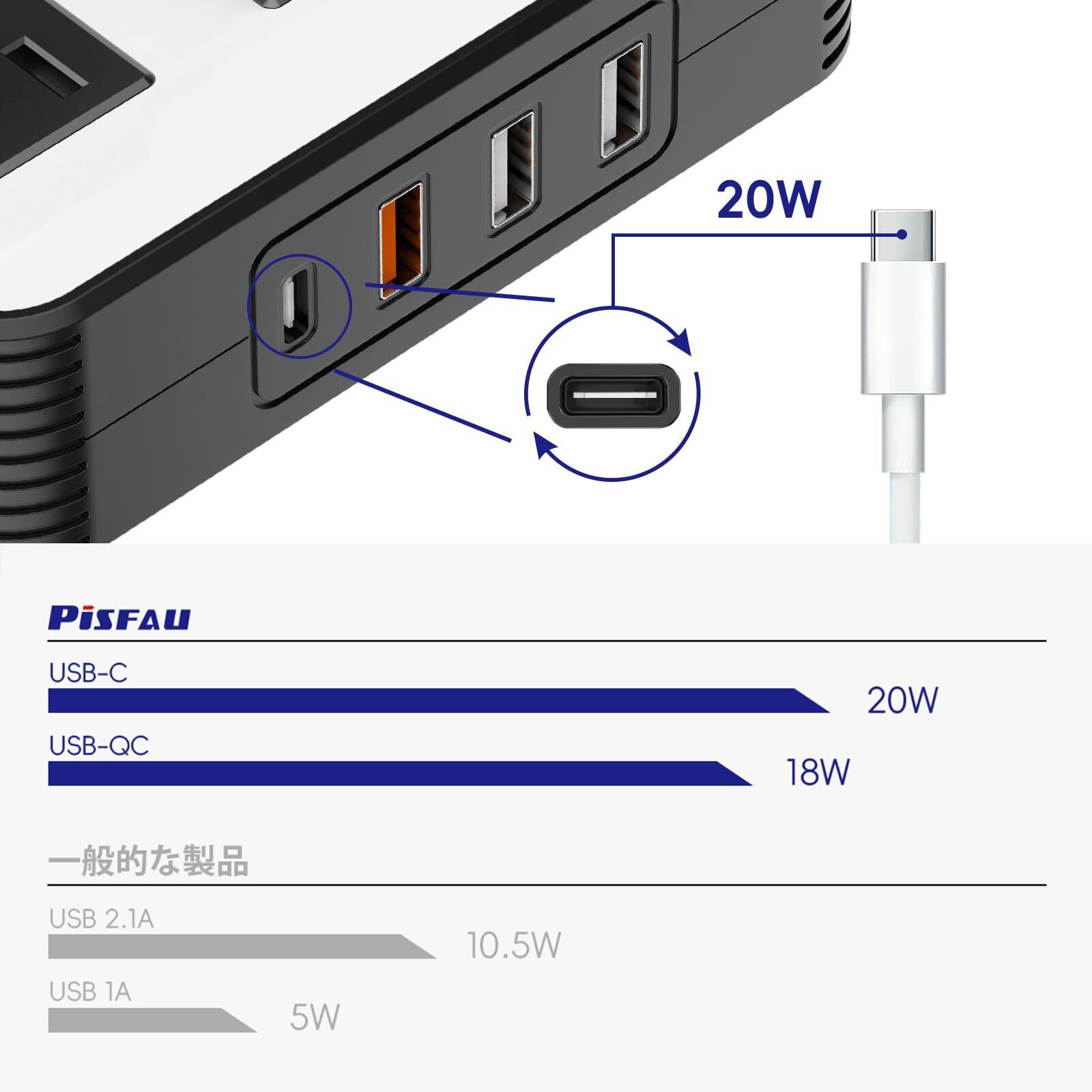 【数量限定】PiSFAU インバーター 200W シガーソケット コンセント, DC12VをAC100Vに変換 カーインバーター,[20W usb-c]付き/USB急速充電(18W)/4.8AデュアルUSB/ノートパソコン用車載充電器