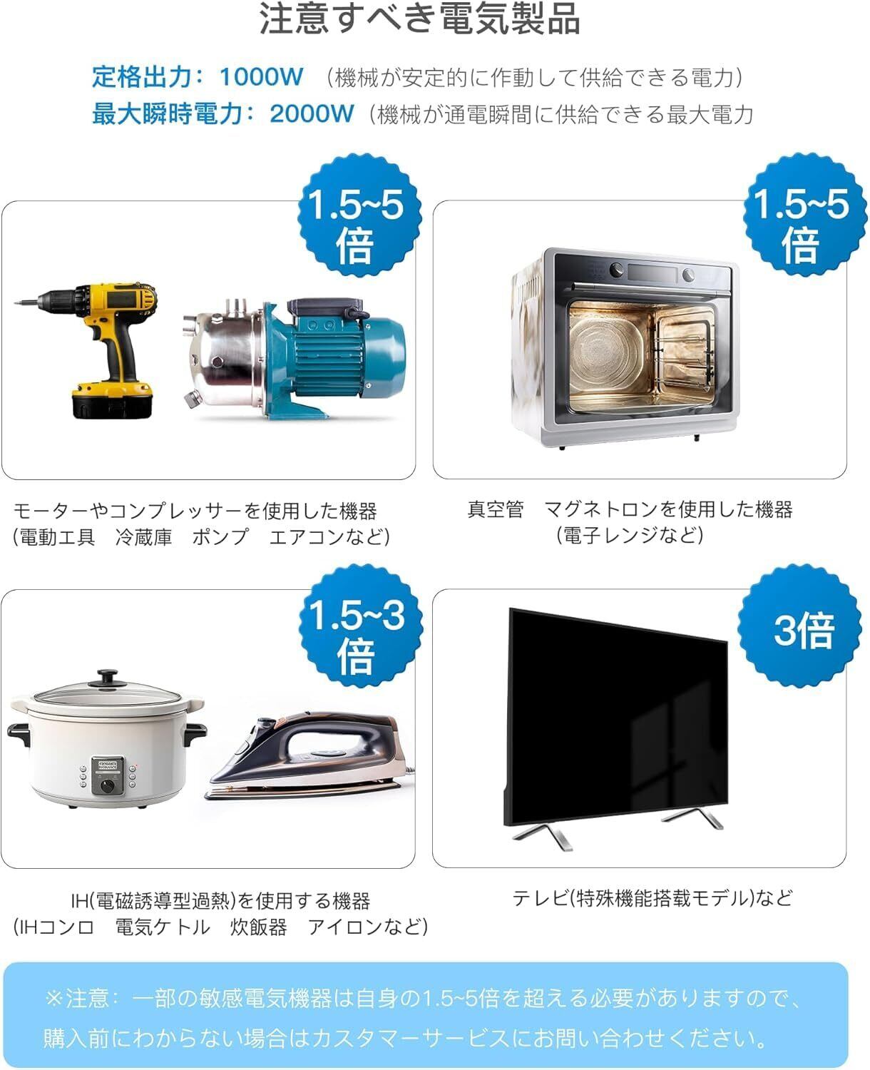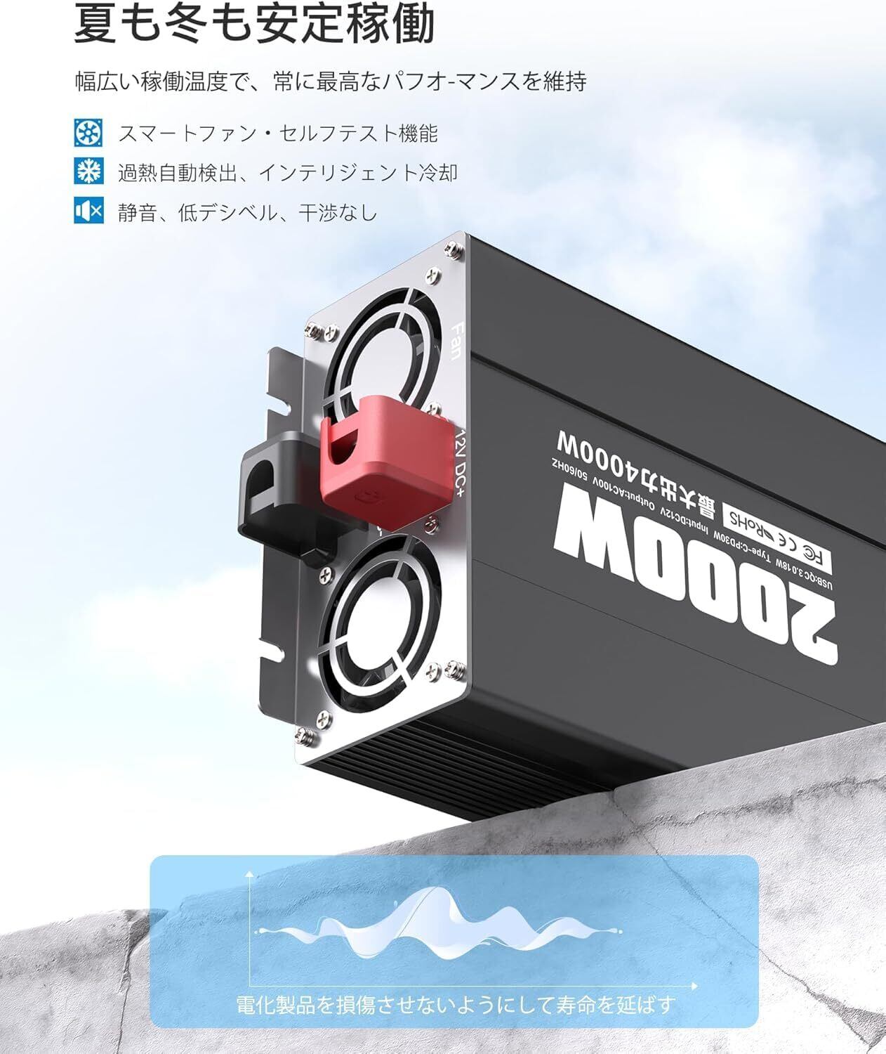 - 特徴:2000W 正弦波出力、最大4000Wの瞬間出力