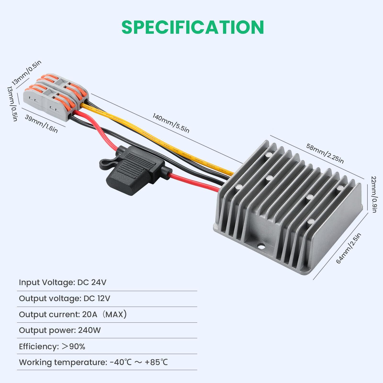 【在庫セール】240W 12V 20A 降圧コンバータ、DC 24V 降圧12V コンバータ-防水/短絡保護/過電流保護を備え、電源アダプタはゴルフカート、トラックなど12 V設備に適している