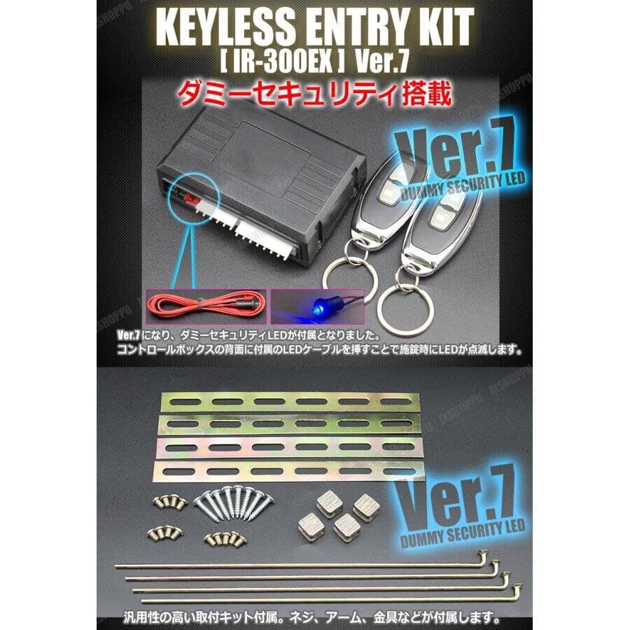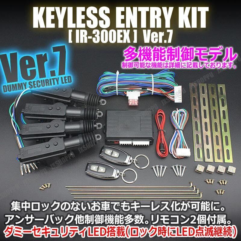 キーレスエントリー キット アンサーバック機能付き ロック・アンロック機能 汎用 12V 後付け IR300 セキュリティ LED アクチュエーター4台/リモコン付き