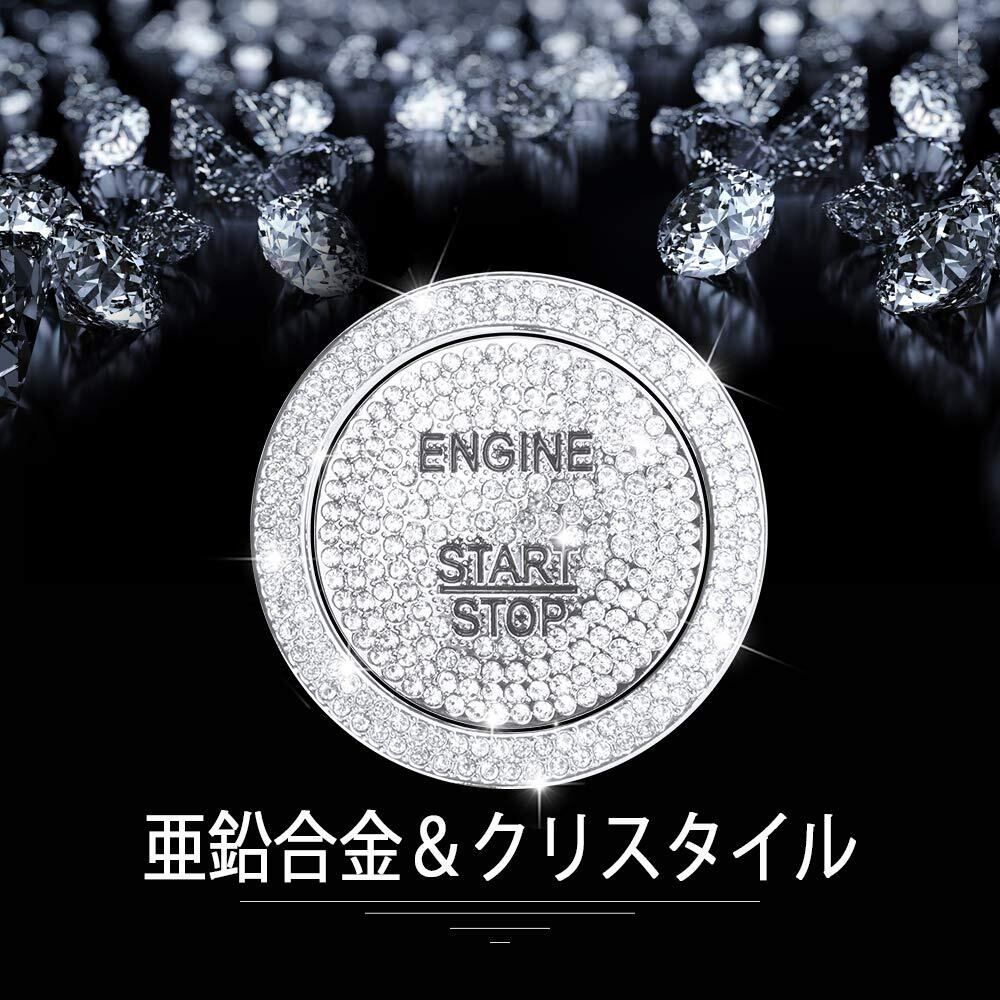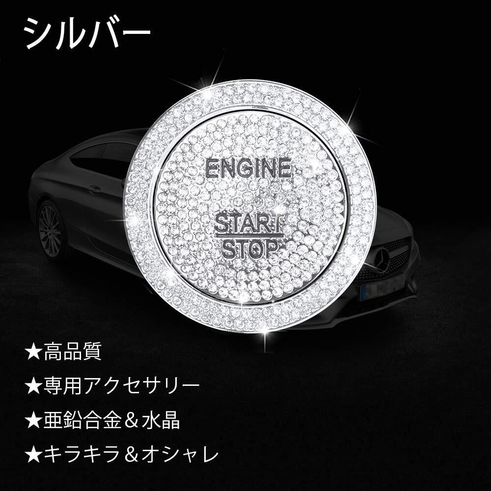 Catland メルセデス ベンツ アクセサリー W205 C117 X156 X253 C CLA GLA GLC クラス エンジンスターターリング 内装 カスタム パーツ スターターボタン カバー インテリアパネル ラインストーン 亜鉛合金 シルバー 両面テープ付き 取付簡単 2枚入り
