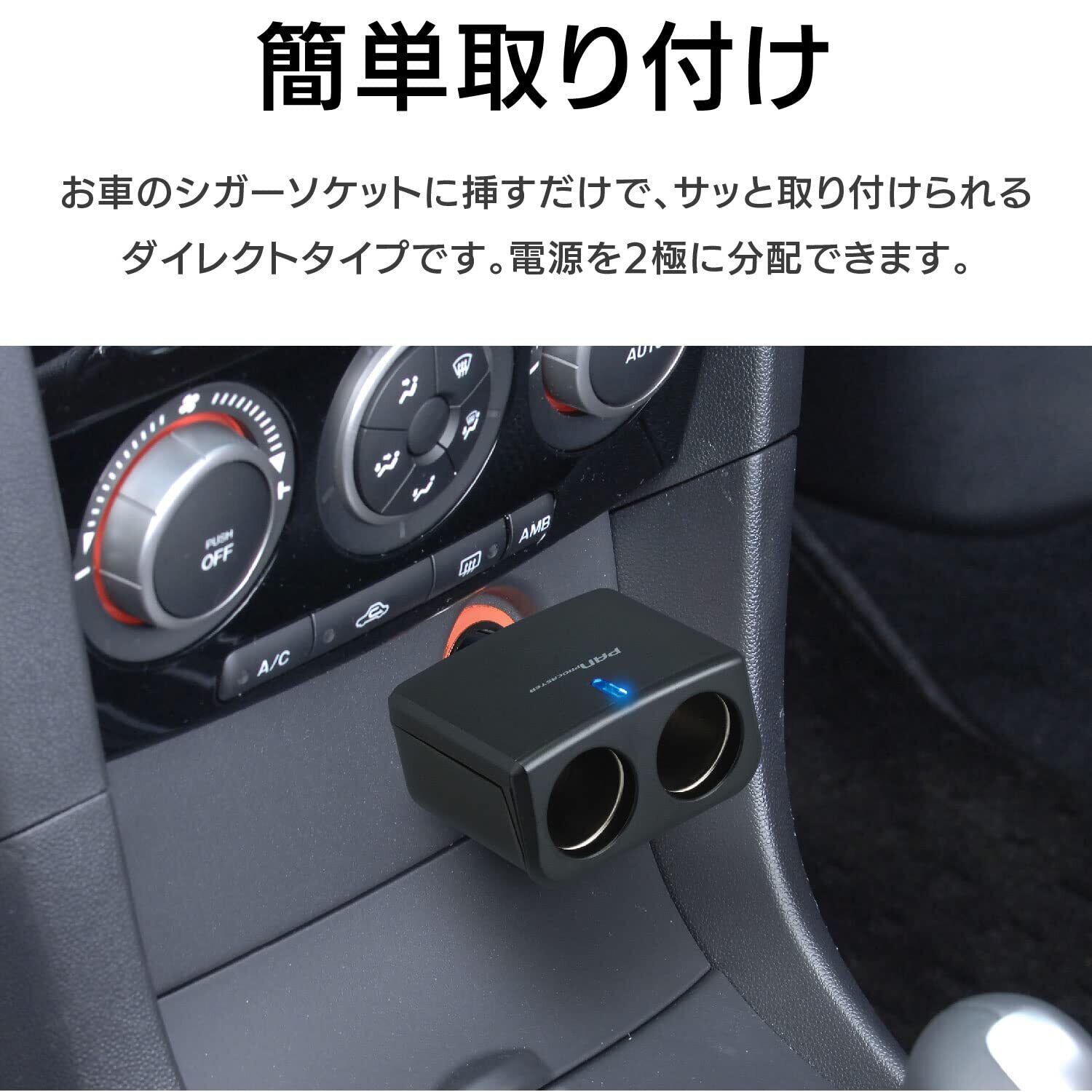 3【スムーズな取り付けで手間いらず!】ダイレクトタイプの設計により、シガーソケットに差し込むだけで簡単に取り付けが完了。特別な道具は不要なので、すぐにお使いいただけるのが魅力です。旅行やお出かけにぴったりのアイテムです!