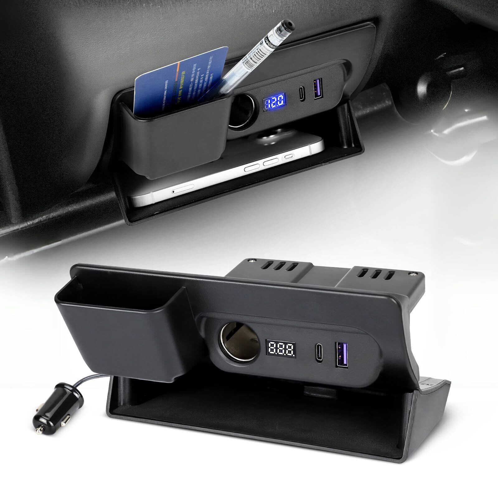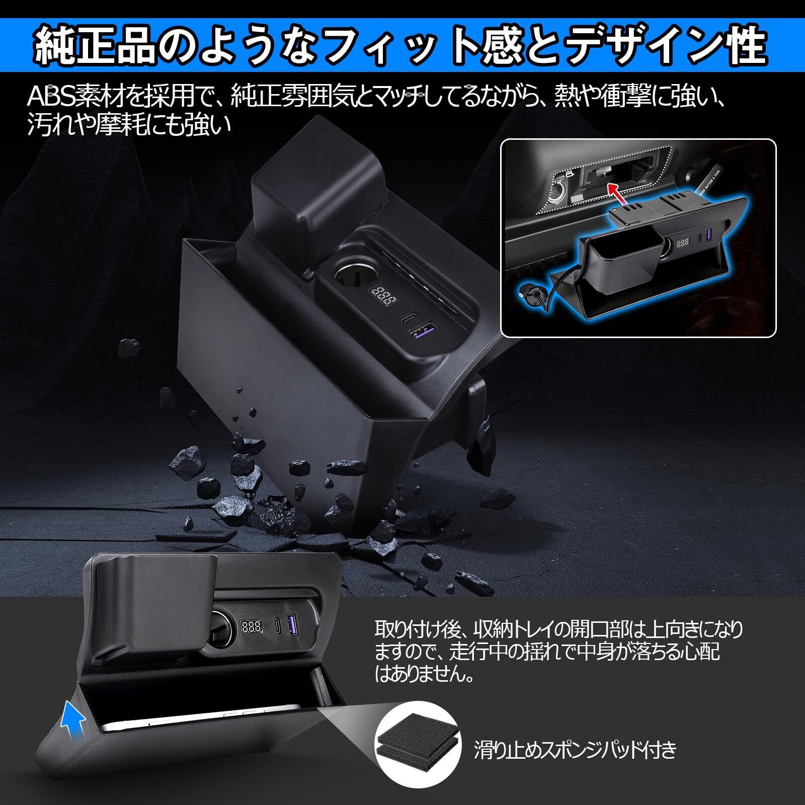 - 特徴:QC3.0急速充電、USB Type-Cポート、電圧計付き、小物入れ、加工不要の専用設計