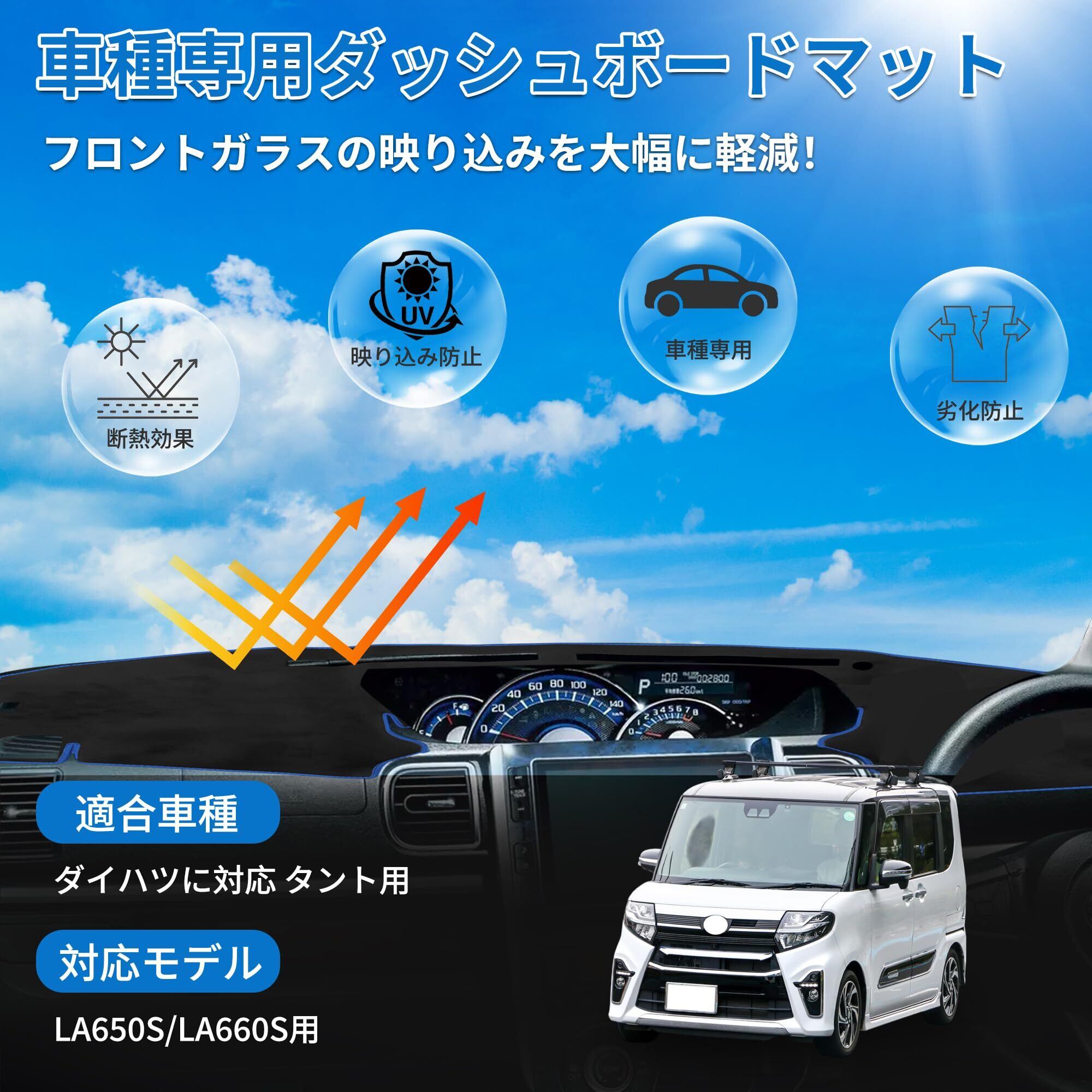 【適合車種】:ダイハツに対応 タント LA650S/LA660S用(右ハンドル専用)セット内容:ダッシュボードマット×1pcs、カラー:ブラック、ブルーライン。※年式・グレード・オプションにより適合しない場合がございます、形状をご確認いただいたうえ、お買い求めください。