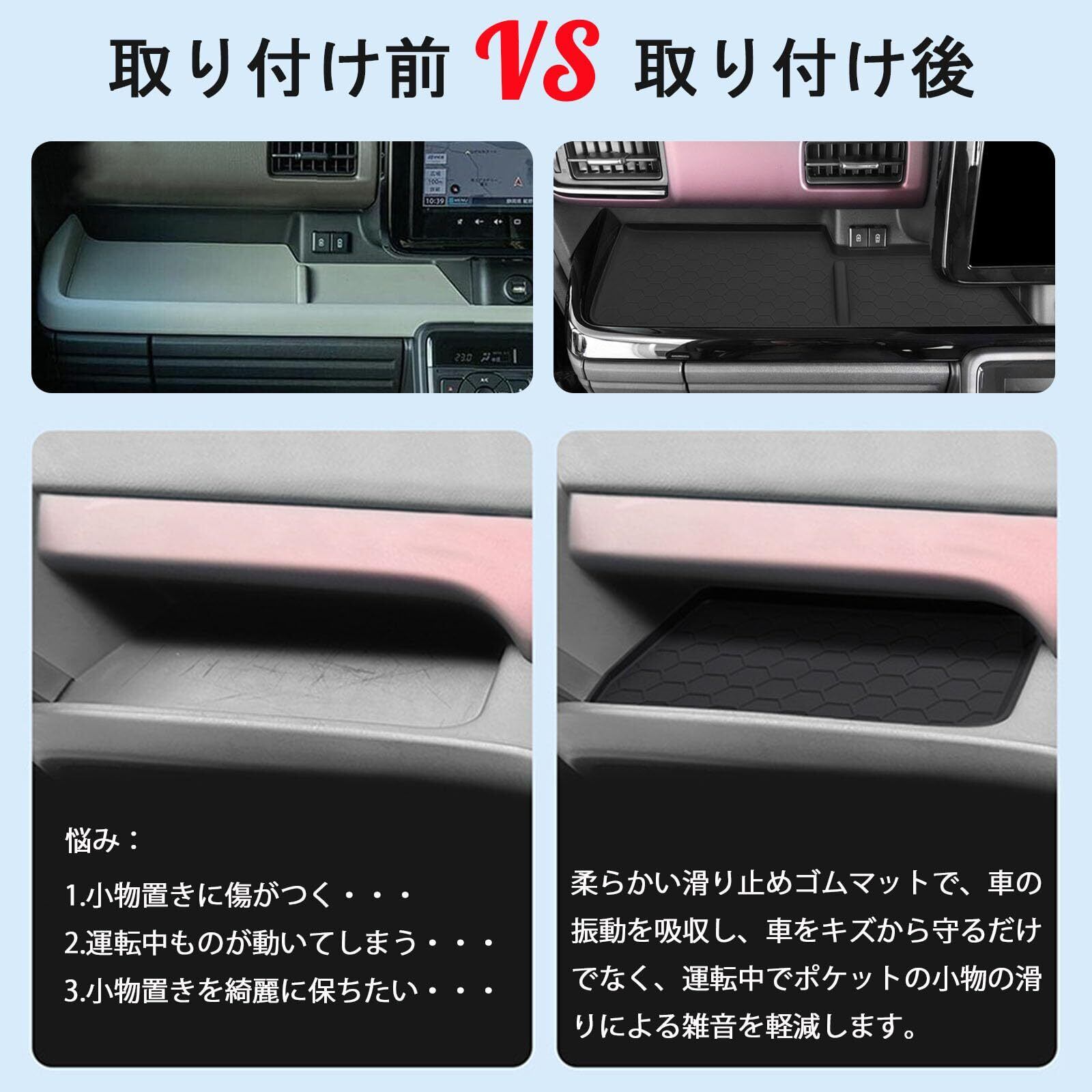 1【運転をもっと快適に!】この「Karell 助手席/運転席オープントレイマット」は、スズキ新型スペーシア及びスペーシアカスタム MK54S MK94S専用設計で、運転中の小物管理を心強くサポートします。滑り止め機能が施されたラバーマットは、運転中の物の移動を防止します。