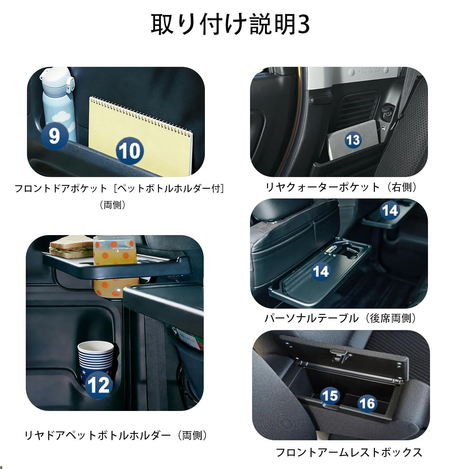 3【簡単取り付けで手間いらず!】専用設計により、愛車のドアポケットにぴったりフィット。特別な工具は不要で、誰でも簡単に装着できます。手軽に愛車のインテリアをおしゃれにアップグレードすることができるアイテムです。
