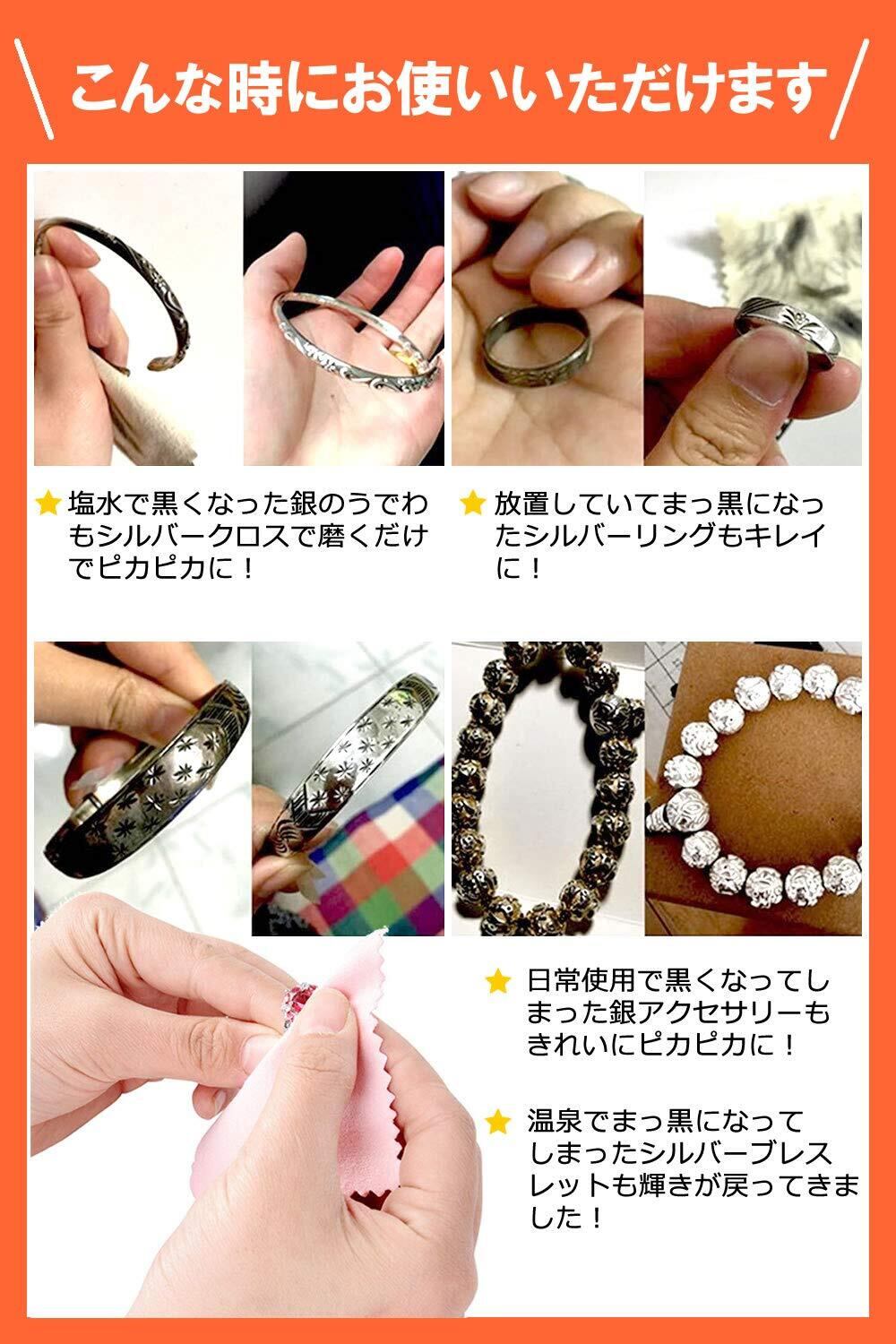 4【多彩な用途に適応!】この磨き布は、ネックレスやリング、腕時計だけでなく、楽器や銀食器などさまざまな金属製品に使用でき、効果的に美しさを保つために便利です。この機会にぜひお試しください!