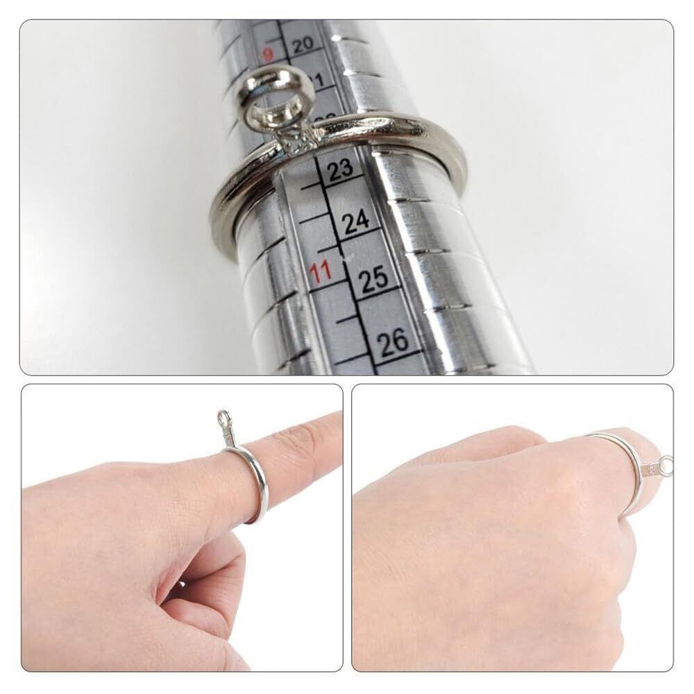【ギフト&プレゼントにも最適】アクセサリー屋の店員さんがよく腰につけているタイプのリングゲージです。 ネジ脱着式のワイヤーに束められていますので、簡単に各サイズのリングを外して計測できます。アクセサリー好きなら1個は持っておきたいマストアイテムです。