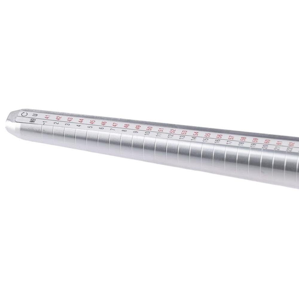 Ring Sizer Mandrelはアルミニウム材料から成っています。軽量で扱いやすい、ローリングリングスティックのデザインです。