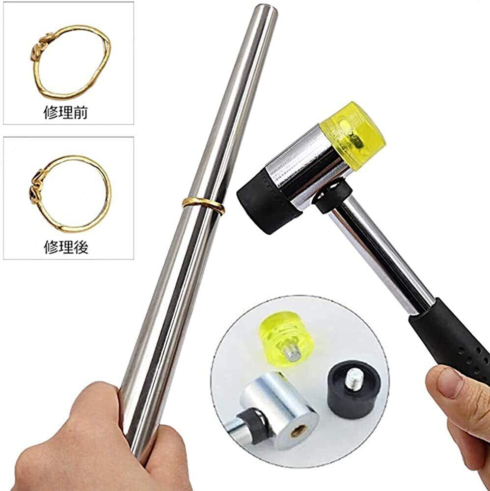 指輪 サイズ 測定 1号-30号対応 便利な リング 指輪 サイズ 調整 & コンビハンマー 補修ツール 4点 セット スチール ジュエリー用 工具 道具 プラチナ