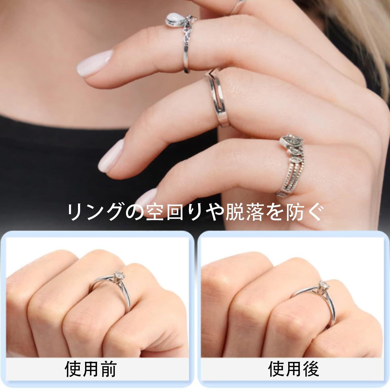 3【男女兼用、どんなスタイルにも!】シンプルで透明なデザインは、どんな指輪にも合うため、プレゼント用のリング調整にも最適です。これがあれば、家族や友人へのギフトも安心して選ぶことができます!