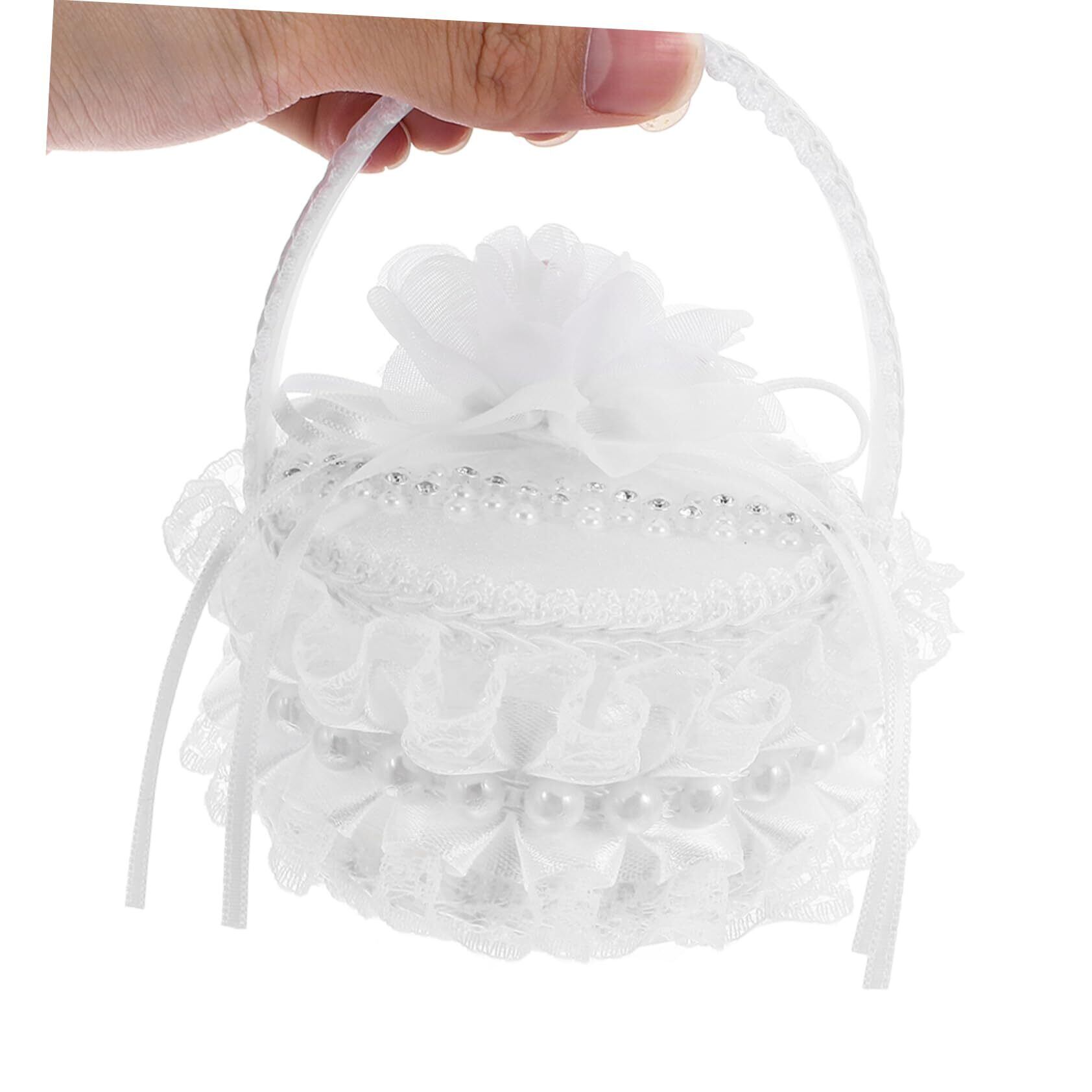 リング保護: ボックスには持ち運びに便利なハンドルが付いており、リングを紛失や損傷から守りますレースサテンバスケット、小さな女の子用バスケット