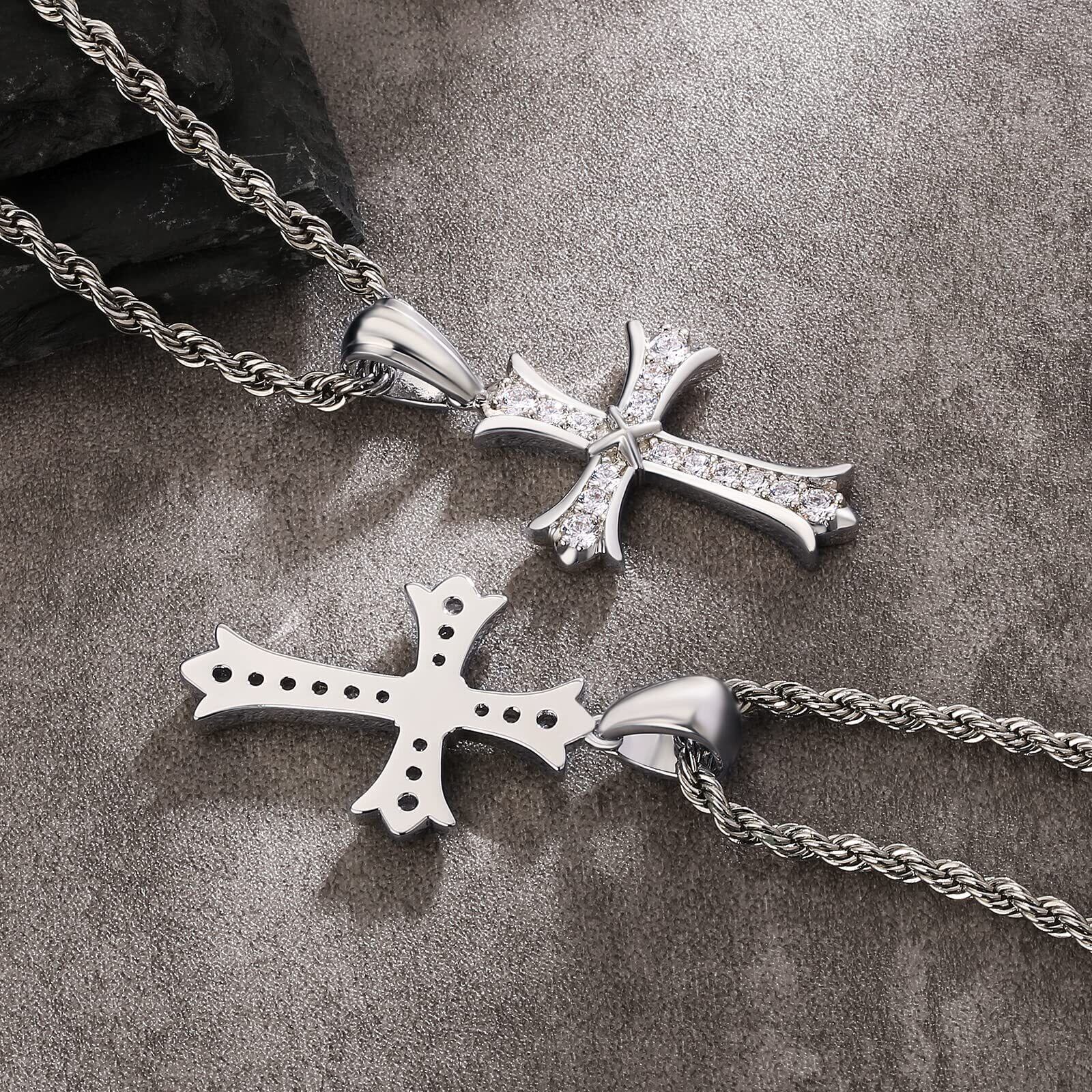 KRKC&CO クロスネックレス メンズ 十字架 ペンダントップ ジルコニア/モアサナイト チェーン付 K14金メッキ 【2点セット】 CZダイヤ キラキラ チェーンネックレス ヒップホップ 人気 プレゼント
