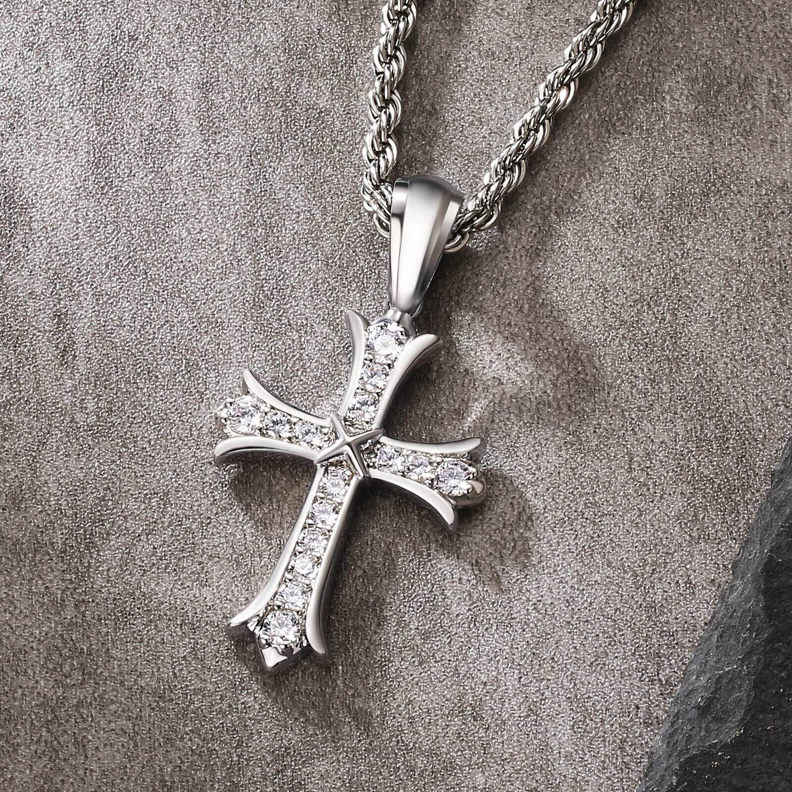 1【洗練された十字架デザインのネックレス!】この「KRKC&CO クロスネックレス」は、男性にぴったりなスタイリッシュな十字架デザインが魅力のアクセサリーです。ジルコニアとモアサナイトの輝きが胸元を華やかに演出し、カジュアルからフォーマルまで幅広いスタイルにマッチします!