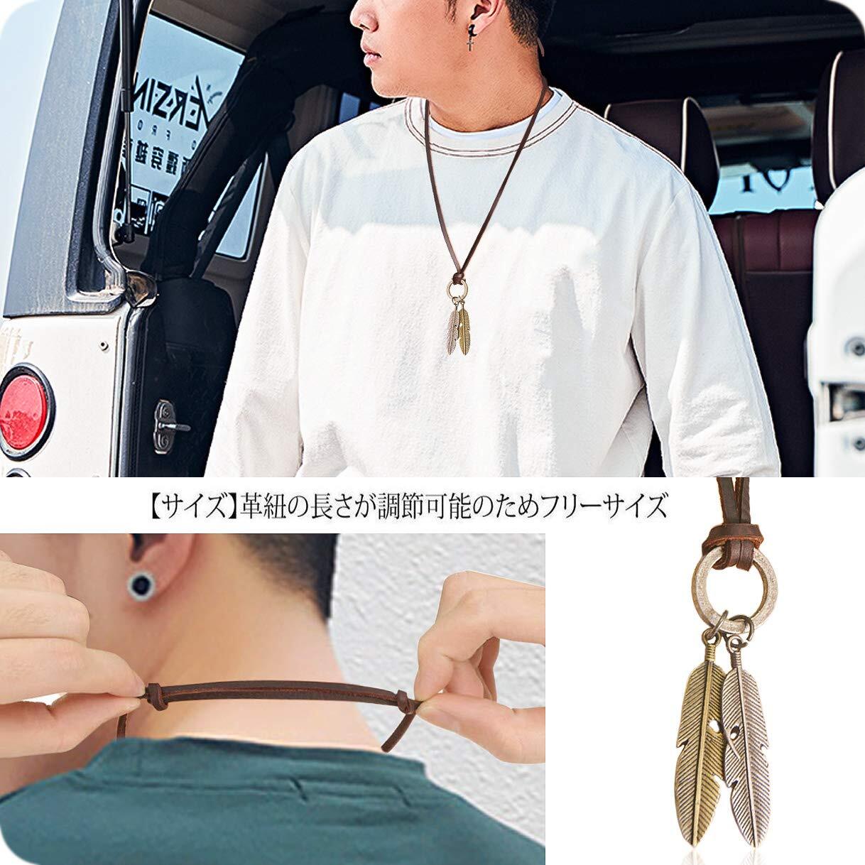 [Richapex] レザーネックレス メンズ人気 革紐ネックレス サイズ調整が可能 ユニセックス ブロンズ アクセサリー アレルギー対応 パーソナルスタイル イーグル 鷲 羽根 翼ペンダント ウルフクロー 角 ダブルリング ポップ エスニック ロックワイルドスタイル