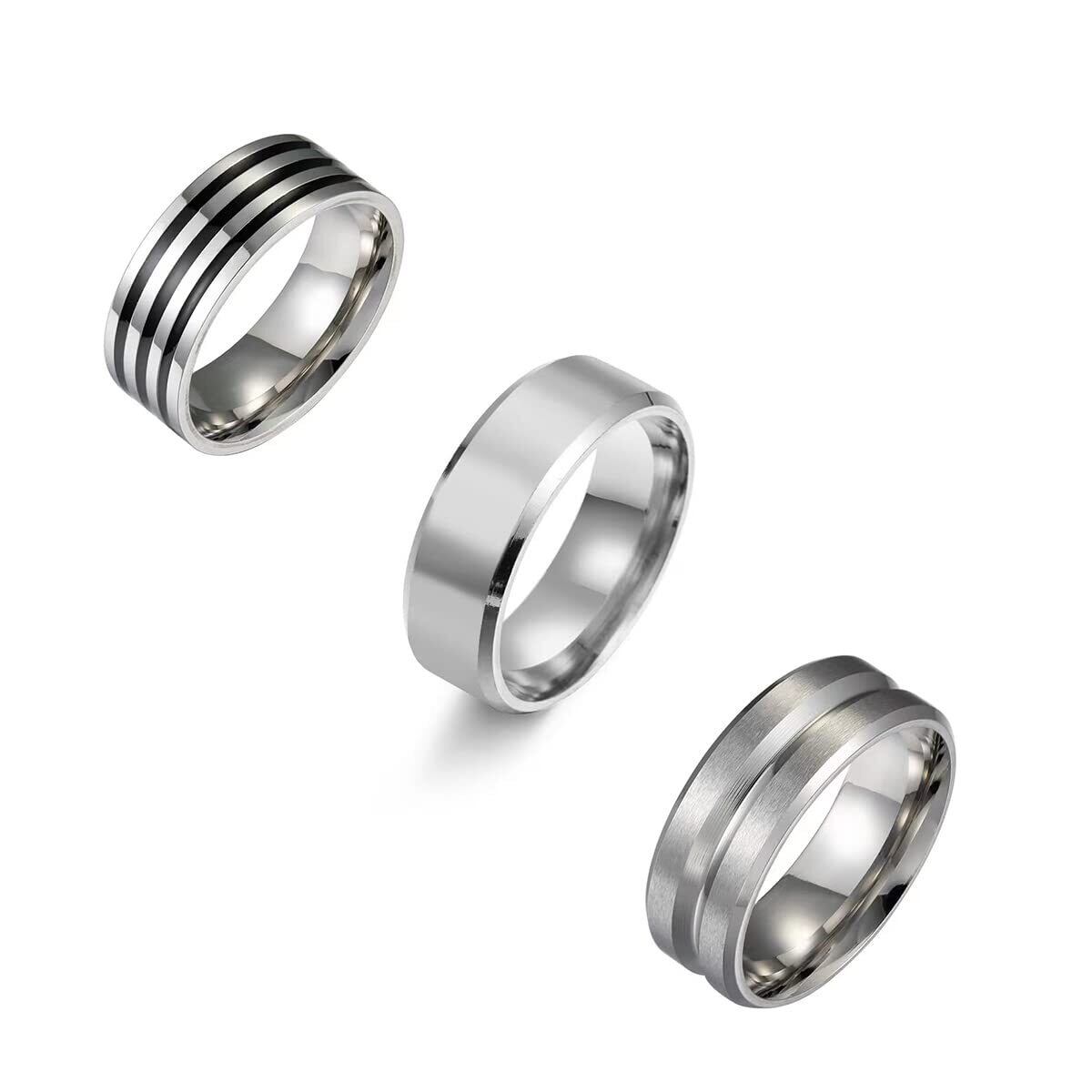 ステンレスのメンズ指輪セット3点です、メンズリングの幅は8ミリ、厚みは2ミリ。
