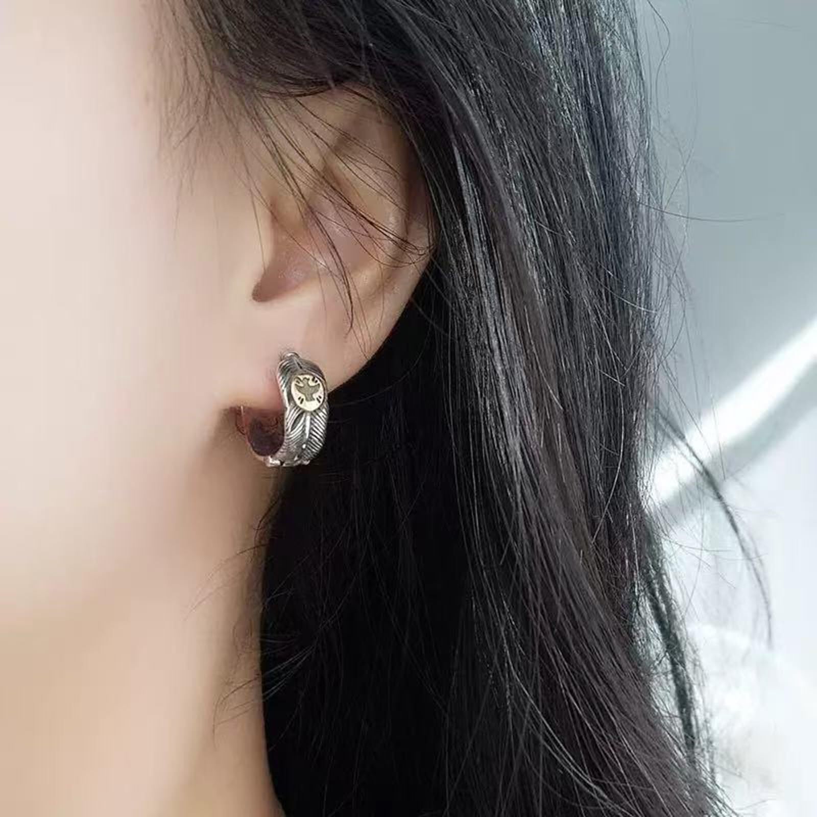 ピアス メンズ フープ/スタッド 片耳 シルバー925 フェザー/イーグル イヤリングピアス シンプル レトロファッション 金属アレルギー対応 男女兼用 お洒落アクセサリー