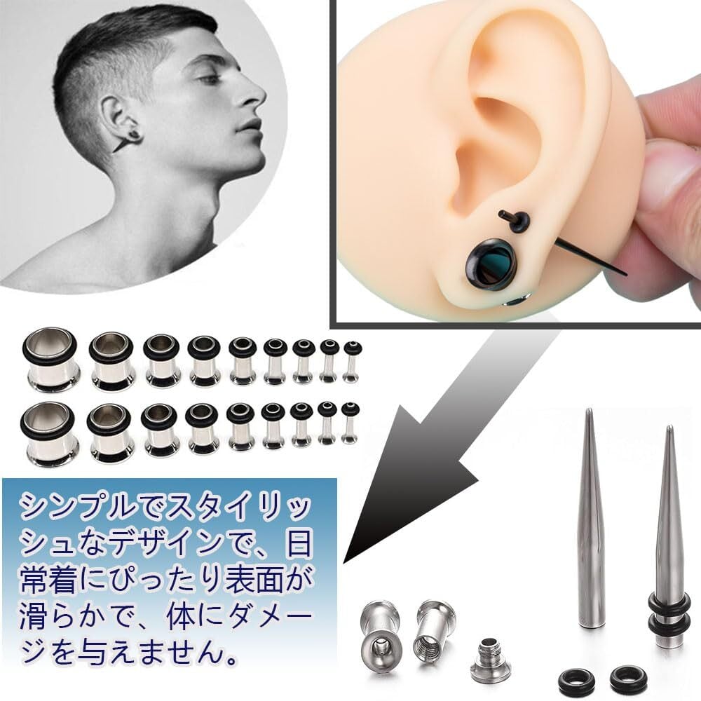 【素材】滑らかな表面仕上げ、負担が少なく拡張できます。あまり痛みを感じることなく簡単に耳を広げることができます。