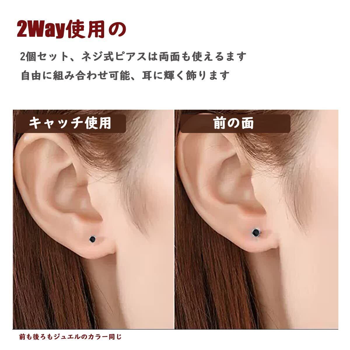 【ピアス】両耳用 材質:チタンステンレス 直径5mm キャッチの色:シルバー 石の色:ブラック 2個セット(1ペア)