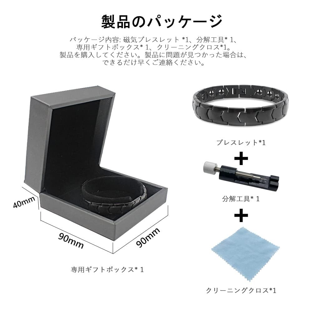 【肌にやさしい】:ユニセックスの磁気ブレスレットは、肌にやさしく、アレルギーを起こしにくいステンレス鋼で作られています。表面は、耐食性を高め、毎日の発汗や入浴中に色あせや錆びない黒い電気メッキプロセスを採用しています。長時間の着用に最適です。