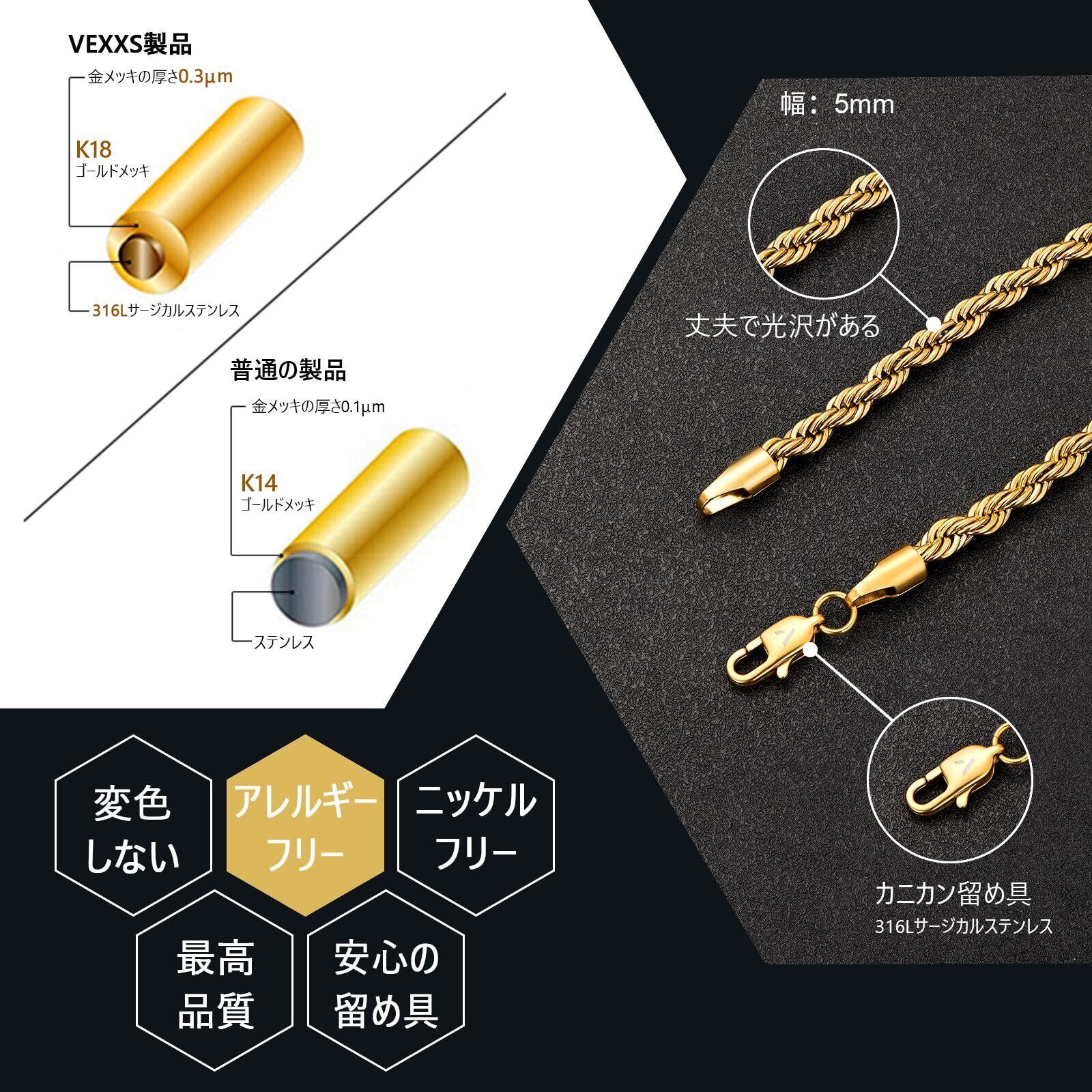 [VEXXS] ロープ チェーン ブレスレット 幅5mm K18 ゴールド ブレスレット 男女兼用 アクセサリー プレゼント ギフト