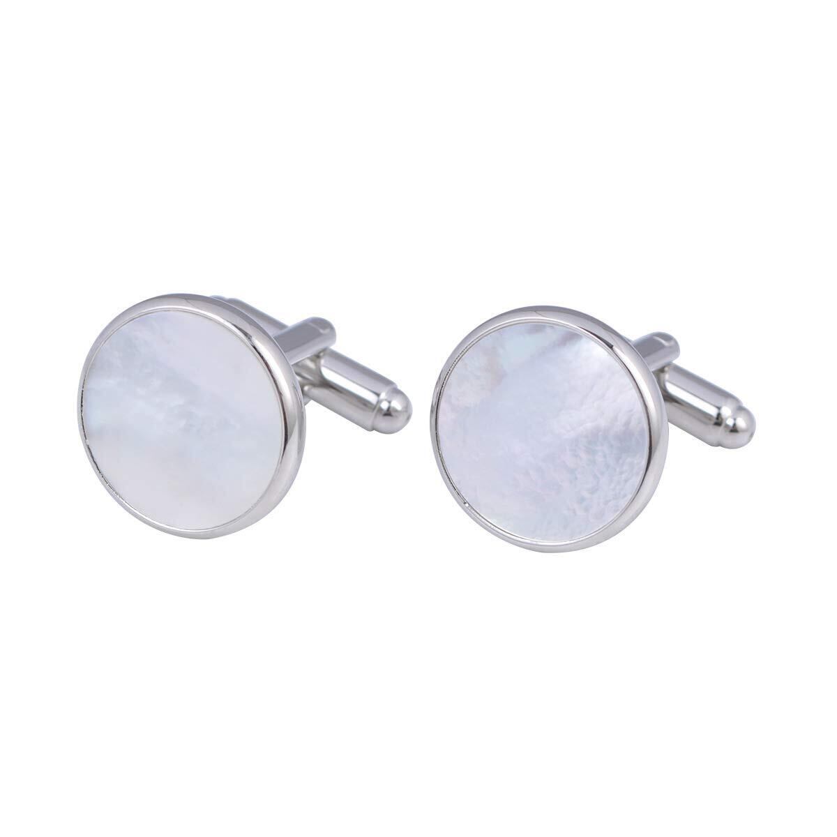 【優れた白蝶貝カフスデザイン】非常に質感のあるラウンドデザインを使用しています,製作過程は厳格で、品質が高く、長い時間を保つことができますビジネスマンでも、ネクタイ、腕時計などにはこだわっても、カフスボタンにまでこだわる人は少なく、他人と差を付けることができます。袖口から覗く綺麗な輝きに注目が集まります。