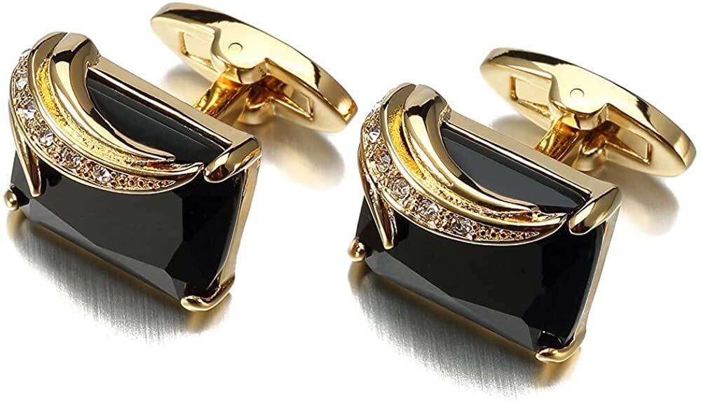Rockyu カフス メンズ ゴールド ステンレス シルバー サファイアカフス オニキス ジルコニア 長方形 翼 ビジネス スーツ 紳士 おしゃれ かっこいい 大粒 ヨーロッパ風 カフリンクス