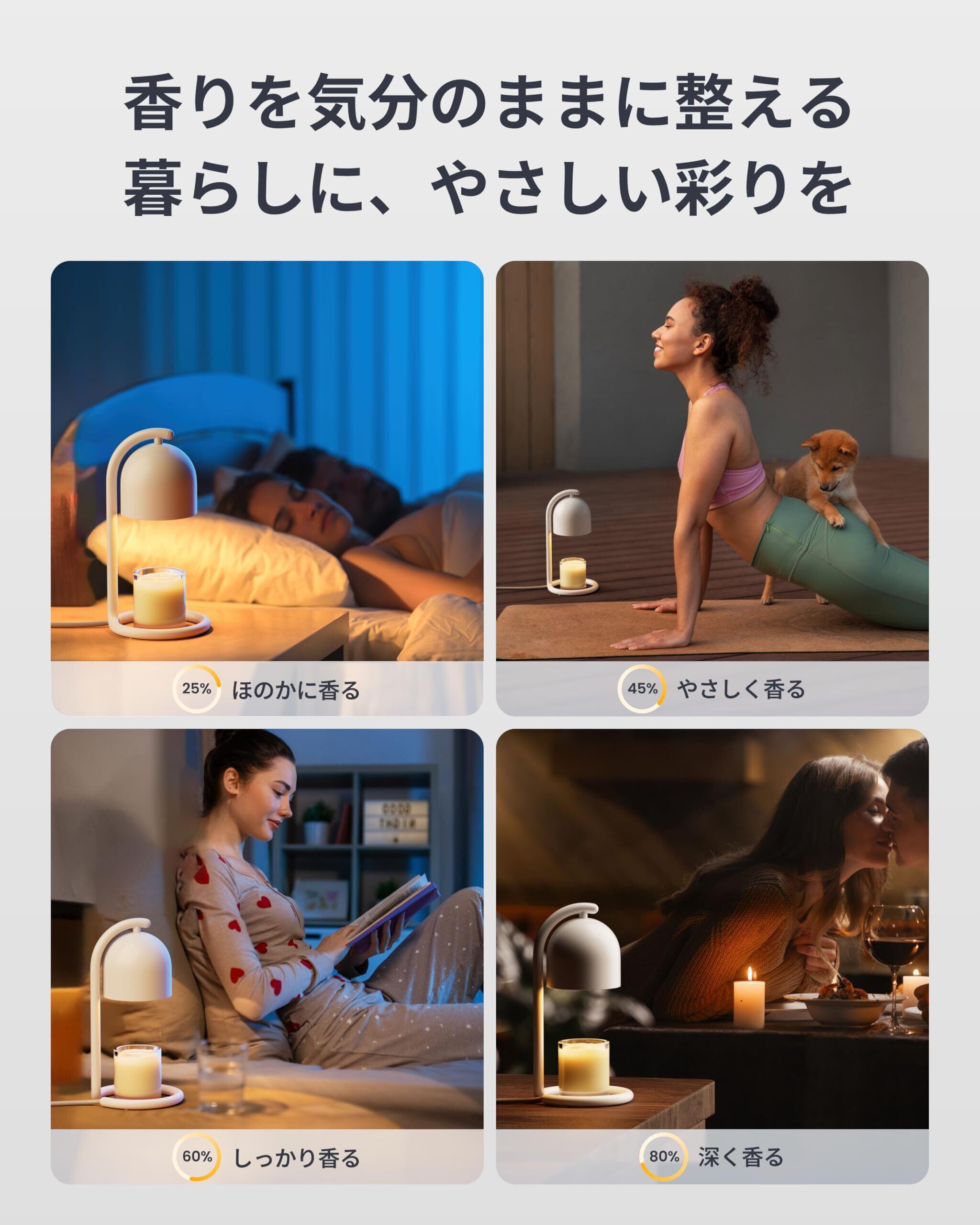 【灯りの熱でやさしく香る。世界初のスマートキャンドルウォーマー】香りの強さもタイマーも、スマホや声で思いのまま。リモコンに触れることなく空間が整う、くつろぎのひとときをスマートにお届けします。
