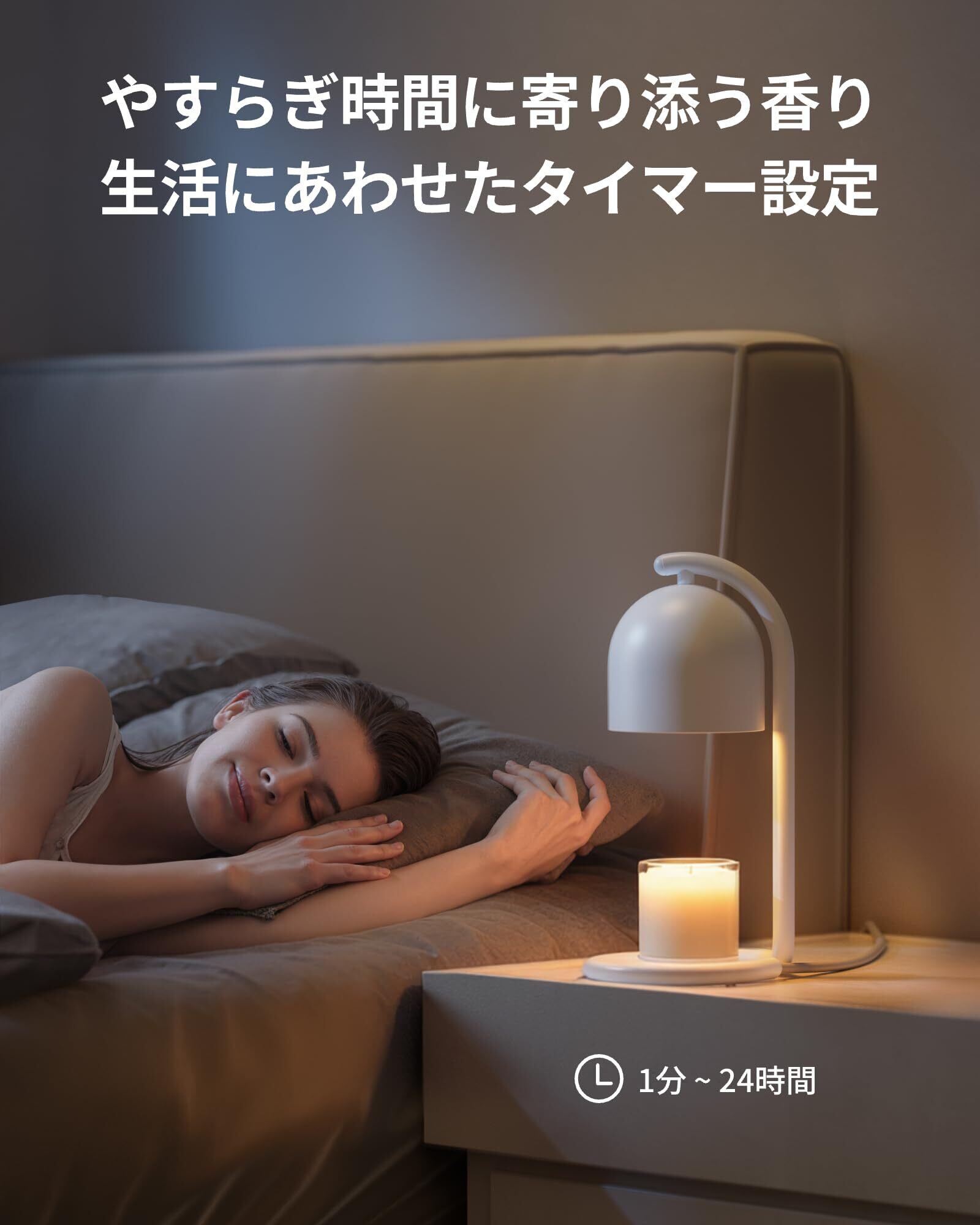 【やすらぎ時間に寄り添う香り、生活にあわせたタイマー設定】1分から24時間までのタイマーが設定可能。読書や入浴、つい夜更かししてしまうドラマの時間にも。寝る前にセットしておけば、寝落ちしても自動でオフに。