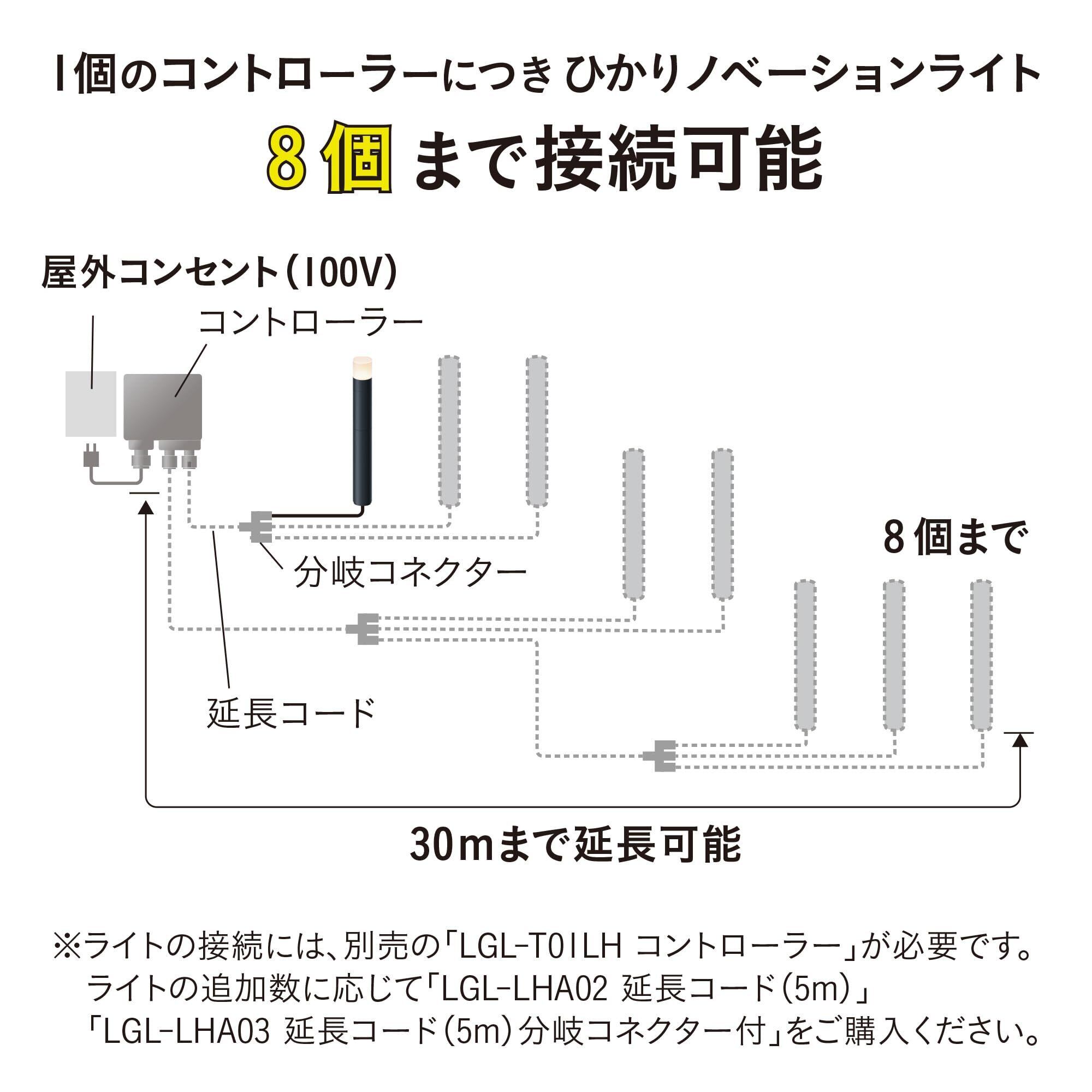 * **自動点灯に対応:** コントローラーに接続することで、光センサーによる**自動点灯/タイマー消灯**機能に対応します。