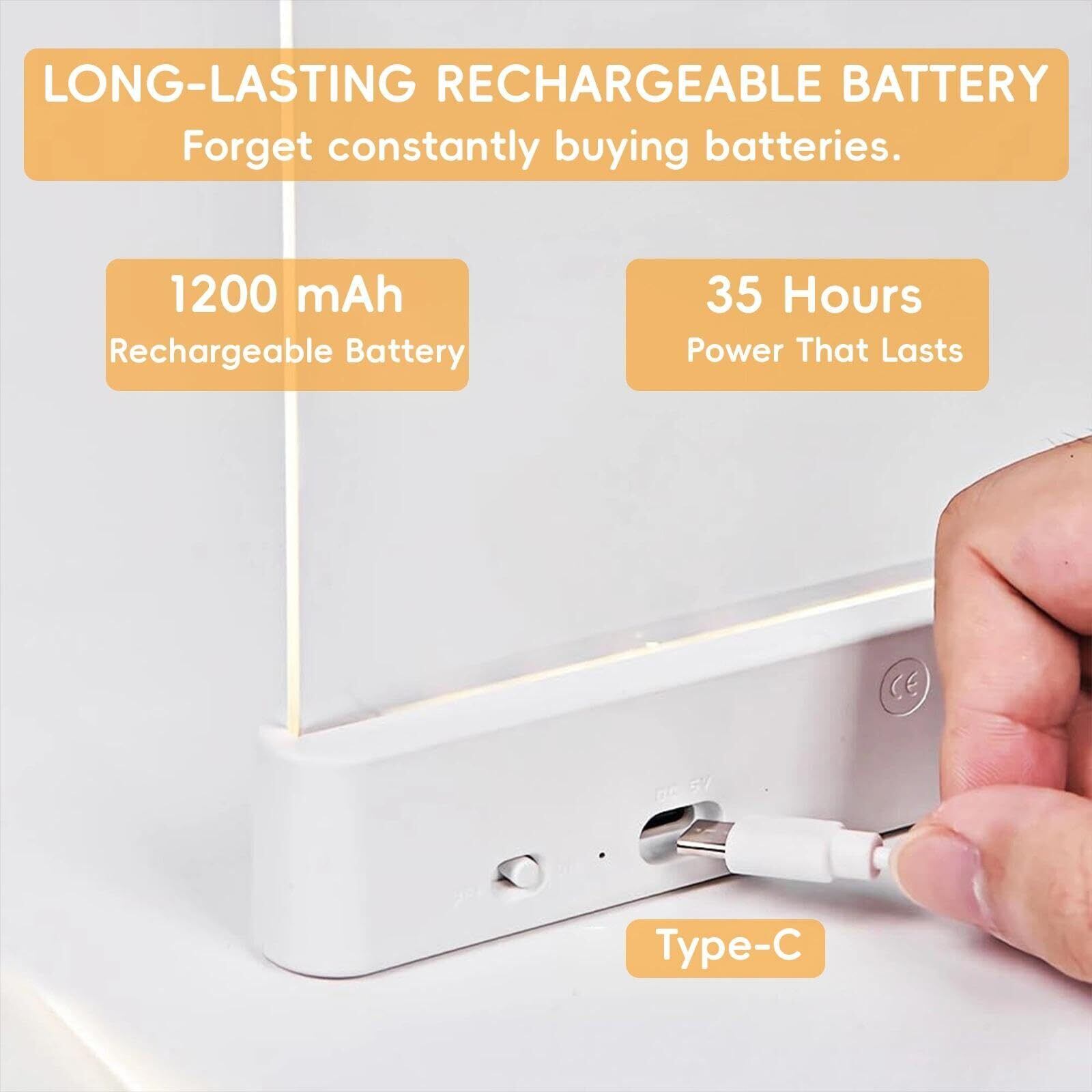 【大容量バッテリーで長時間駆動】 1200mAhの大容量バッテリーを内蔵しており、一度の充電で最大35時間の連続使用が可能です(明るさ設定による)。乾電池を購入する手間やコストがかからず、経済的です。付属のUSBケーブルで手軽に充電でき、コードレスなので場所を選ばず使用できます。