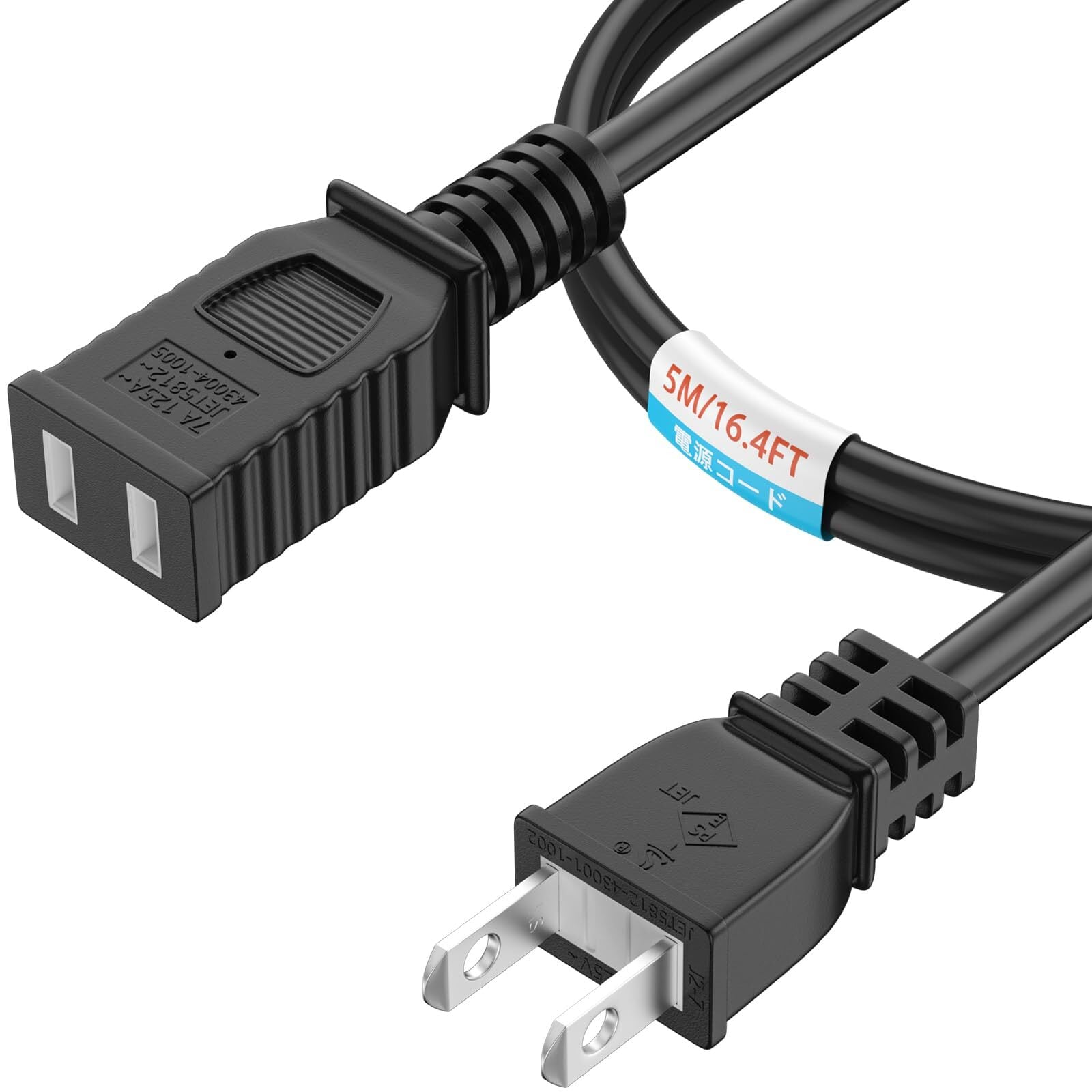 【延長コード 5m仕様】・定格電圧:125V・定格電流: 7A・電線仕様:VCT0.75mm2×2芯・5m長・ソケット口数:1ツ口。(7A/125Vまで、1000Wまで) 日本語の説明書がついています。