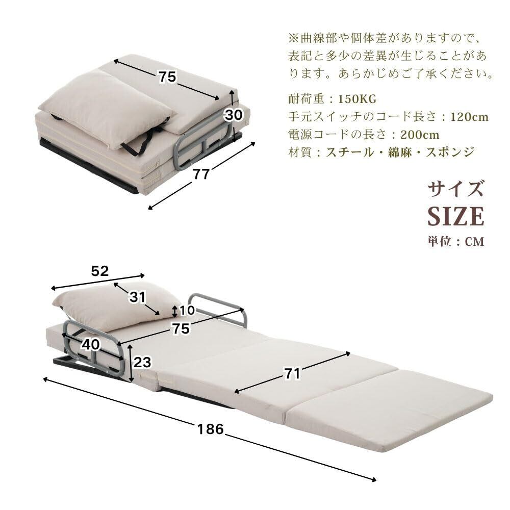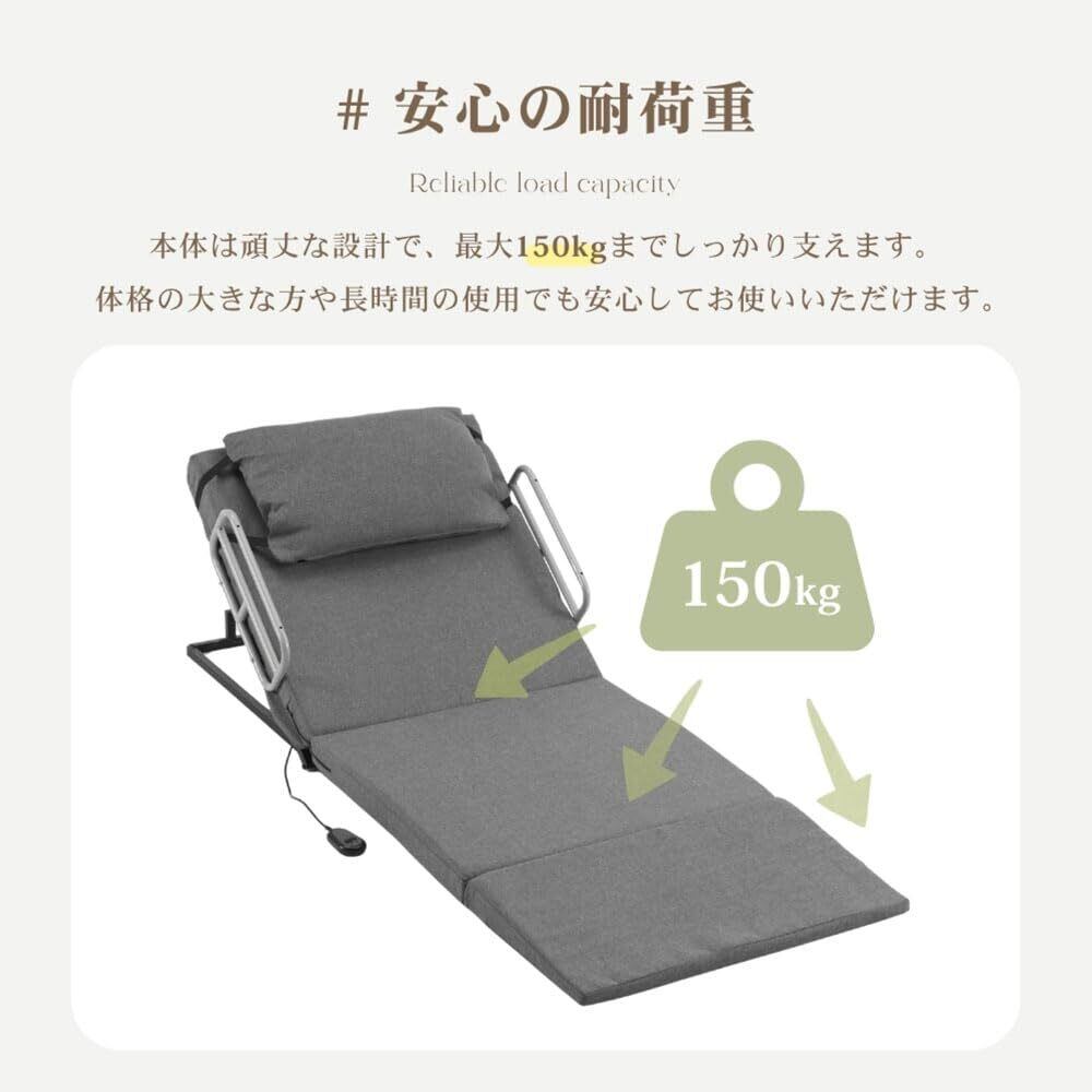 電動リクライニングベッド 介護ベッド 電動ベット 背もたれ 折り畳み 補助 角度調節 簡易 サイドレール 高齢者 妊婦 産後 术后 リハビリ 自宅療養用 術後 布団 起き上がり 介助 施設 仮眠室 休憩室 寮 宿泊施設 クッション付き PSE 完成品 (グレー)